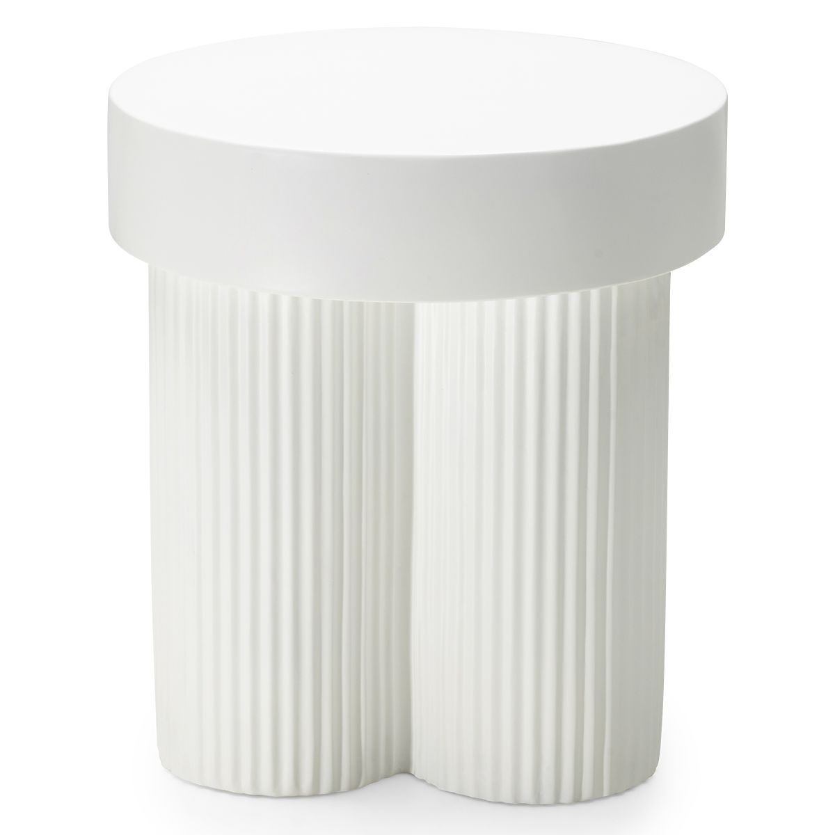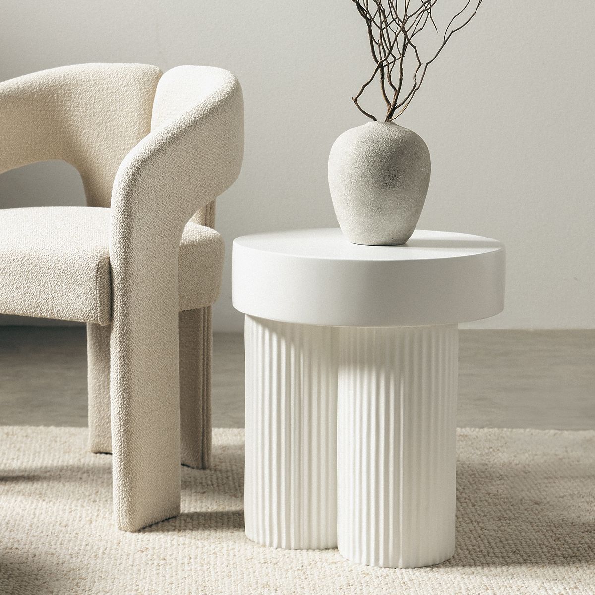 Tavolino da caffè rotondo bianco con base scanalata. .. altro