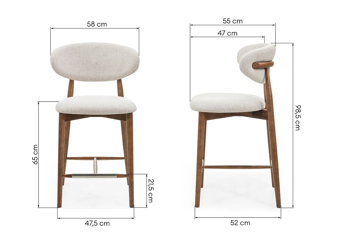 Sgabello da bar in tessuto beige con struttura in legno di frassino marrone. .. altro
