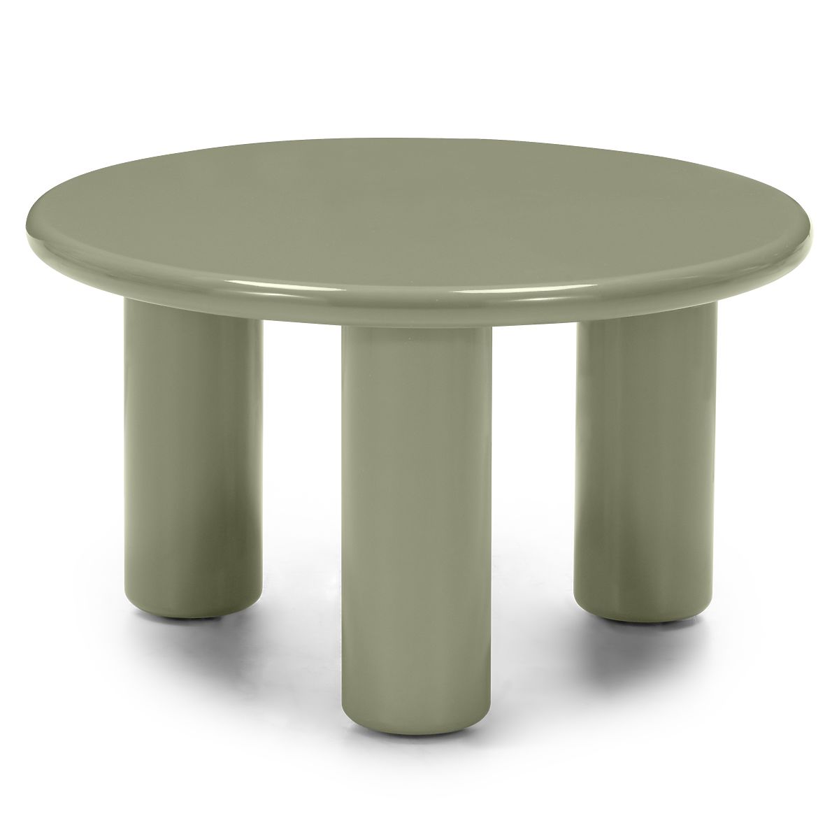 Tavolino Blair in MDF, colore oliva, con piano rotondo lucido. .. altro