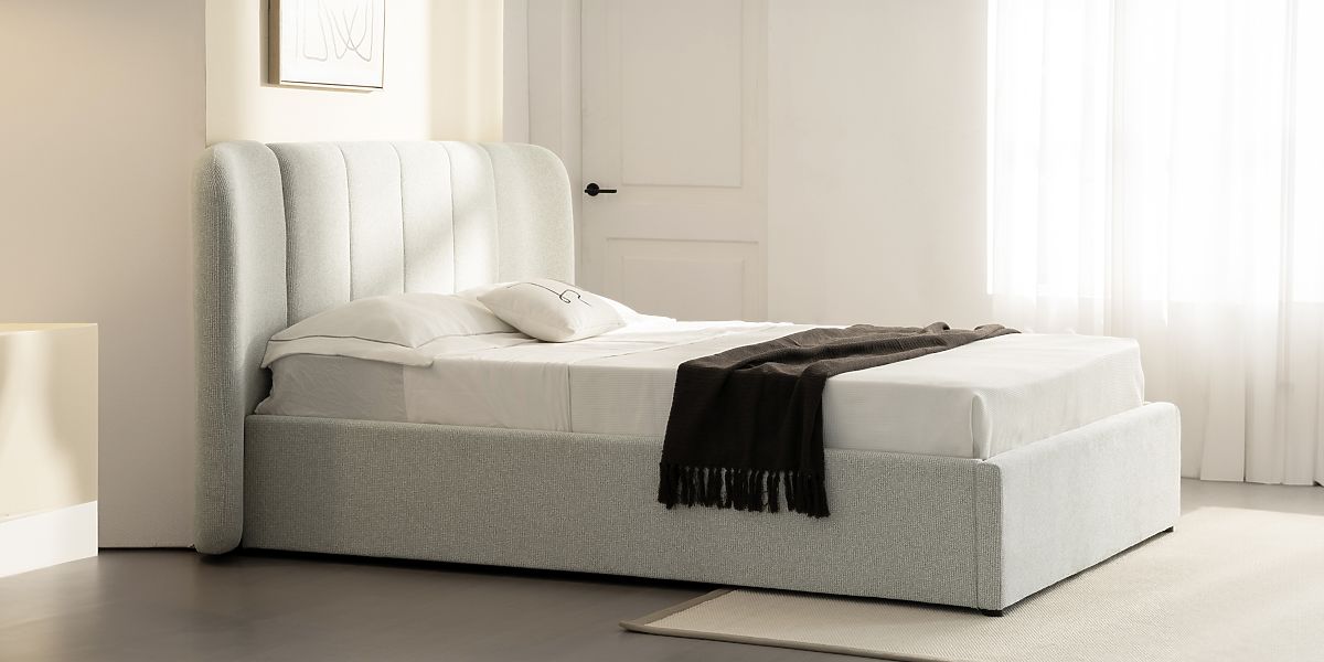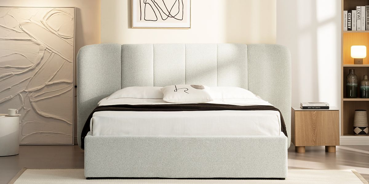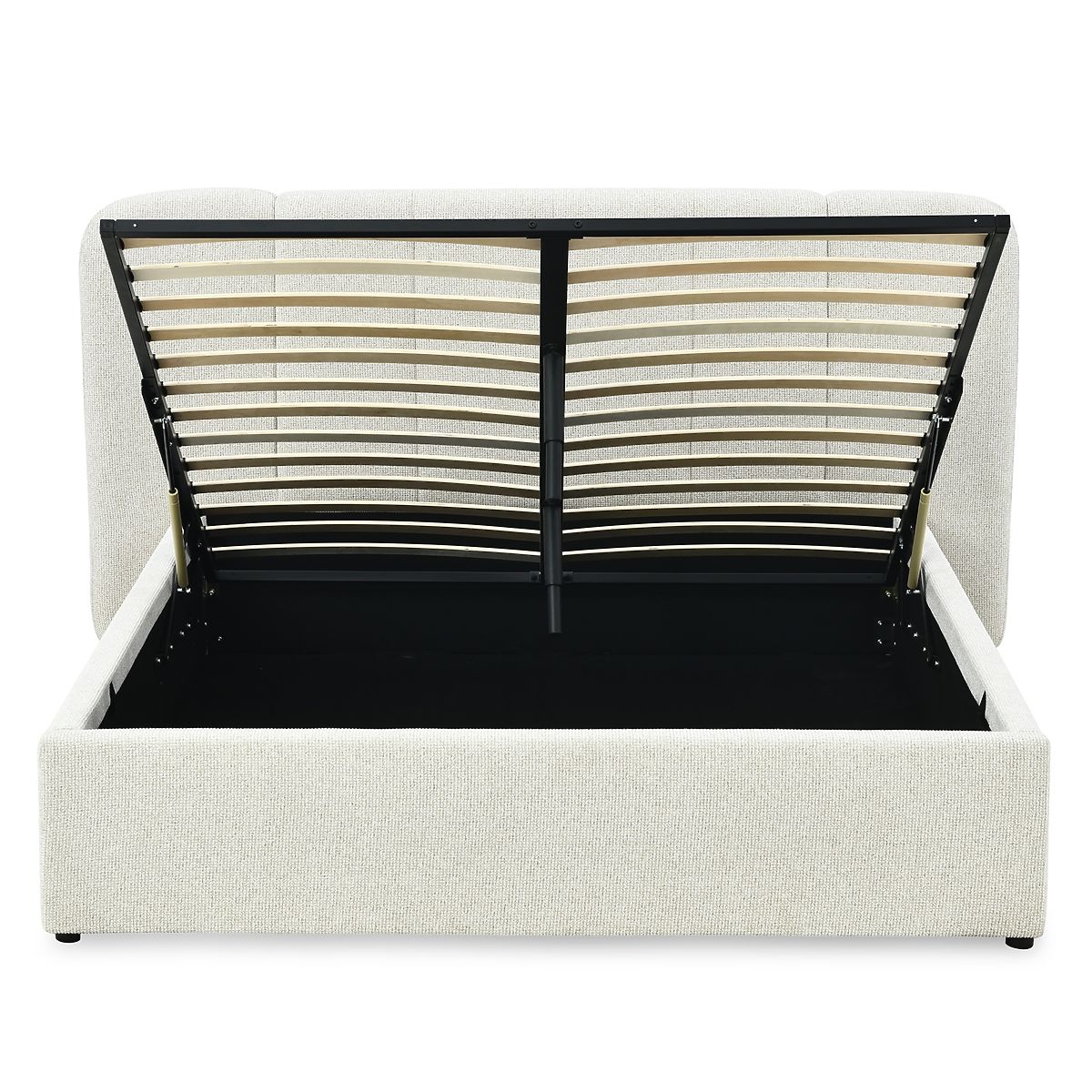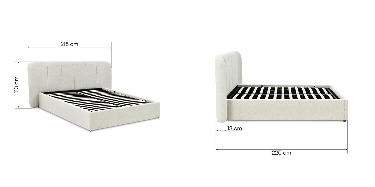 Letto imbottito beige chiaro con rete e spazio contenitivo. .. altro