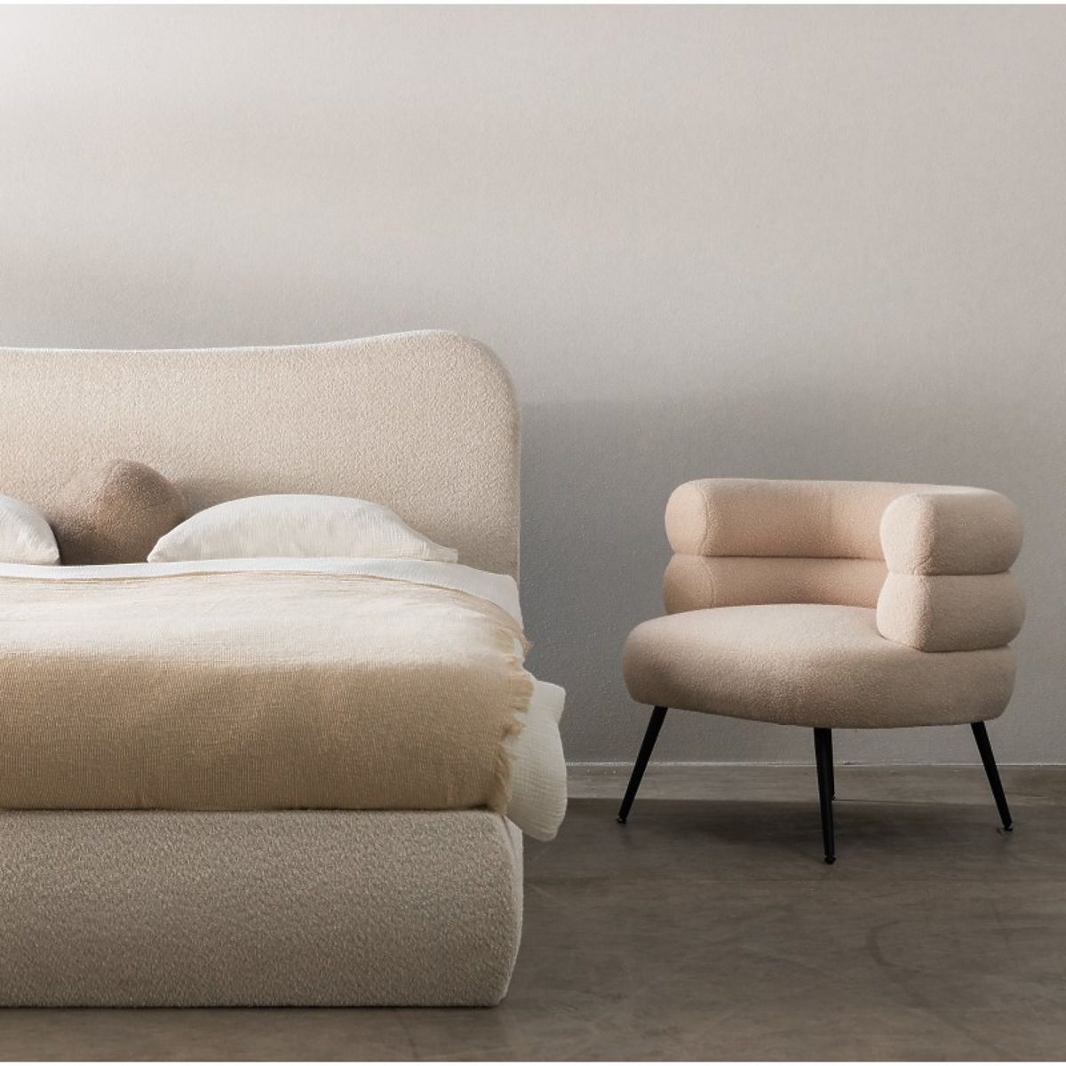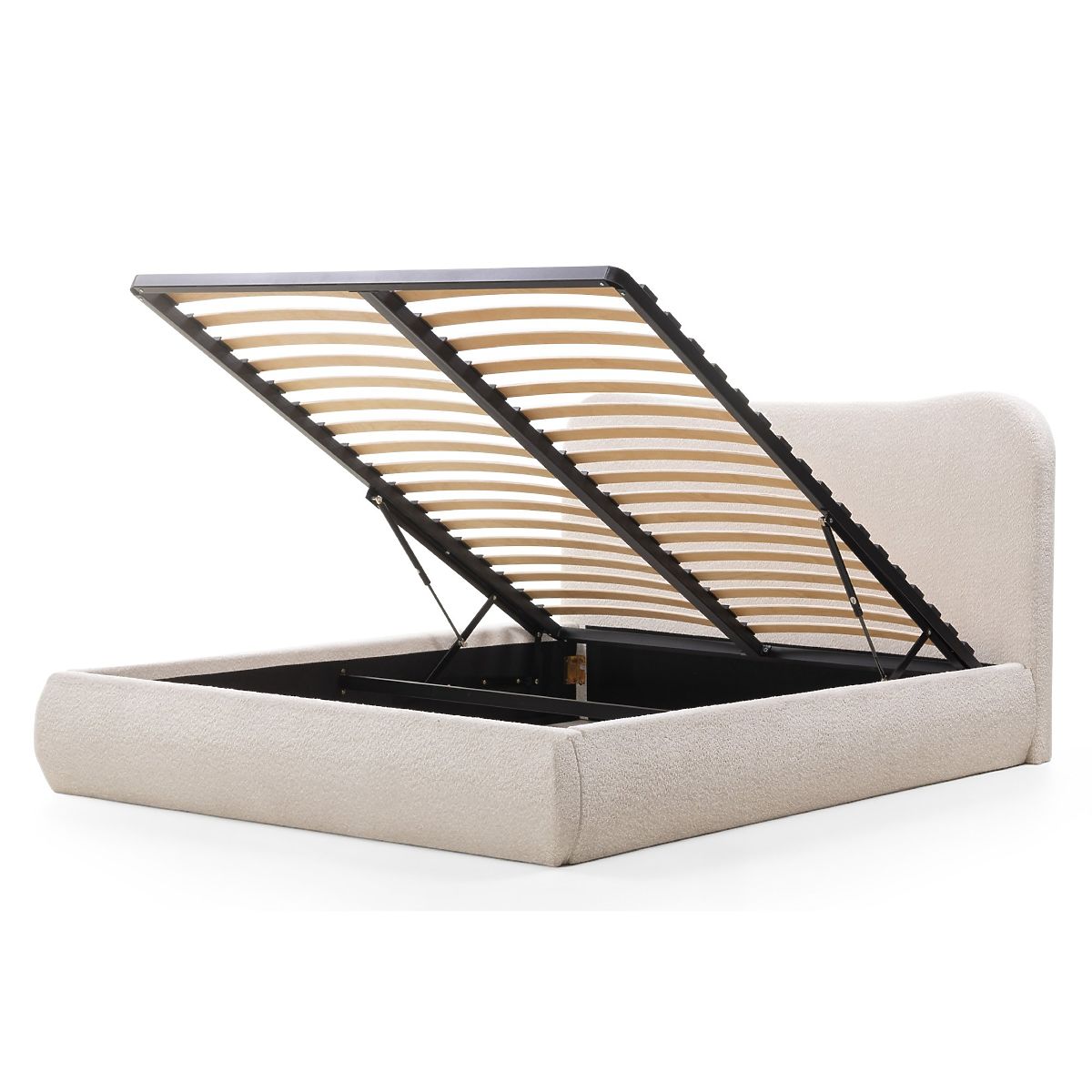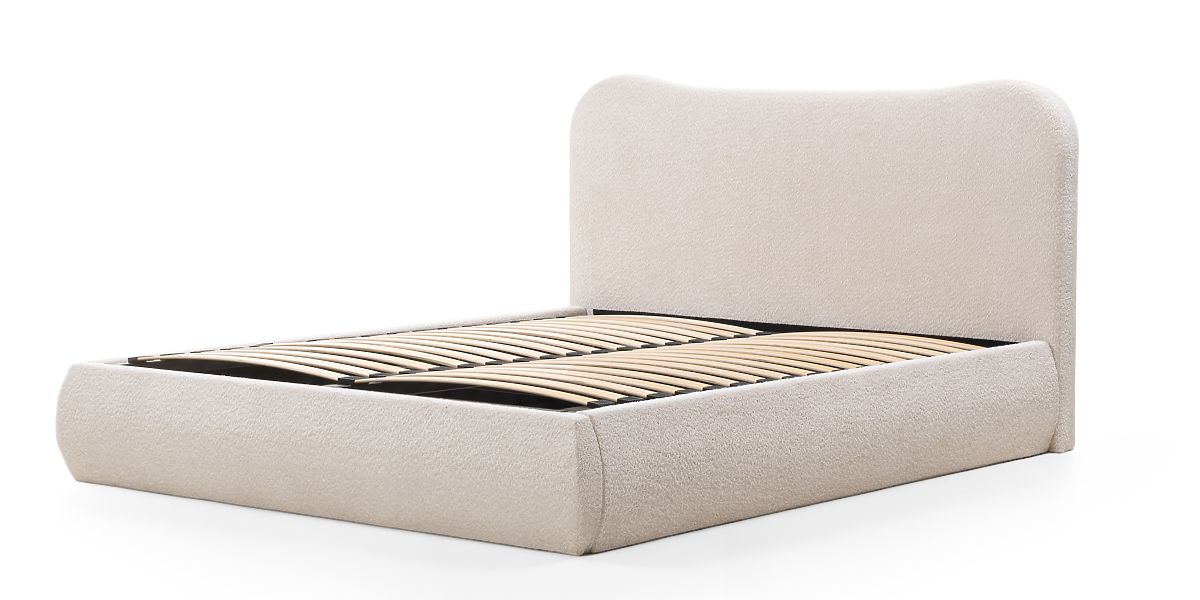 Lukahome.it » Letti / letti matrimoniali / Letti 140x200 / Letto imbottito Derry 140x200 cm, con rete e spazio contenitivo, arrotondato, beige
