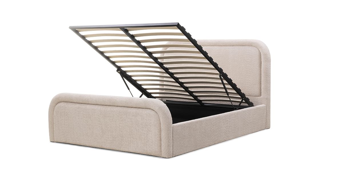 Lukahome.it » Letti / Coniugale letti / Letti 140x200 / Letto imbottito Ovoid 140x200 cm, con rete e spazio contenitore, arrotondato, beige