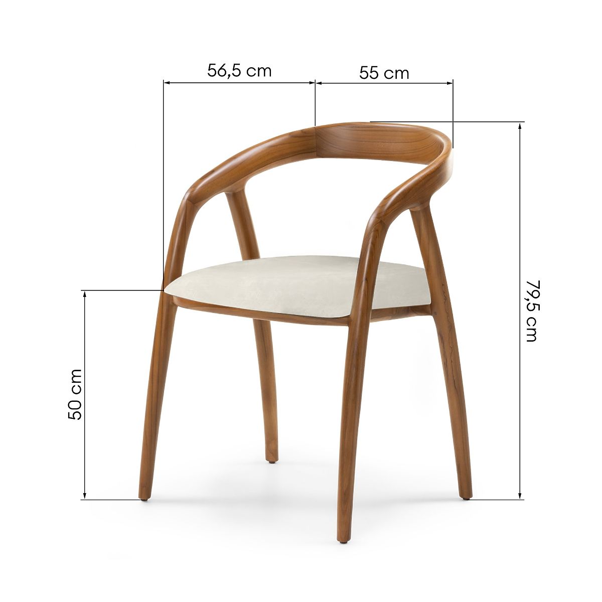 Lukahome.it » Sala da pranzo e cucina / Cenare sedia / Sedia in legno Sande arrotondata, naturale/crema, legno di teak