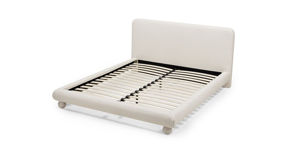 Letto Booli con gambe a sfera e rivestimento beige chiaro. .. altro