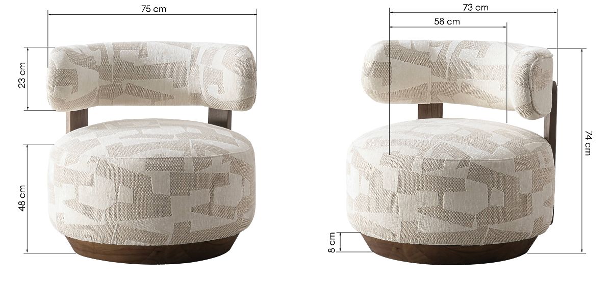 Poltrona Dolce con schienale arrotondato e rivestimento beige-crema. .. altro