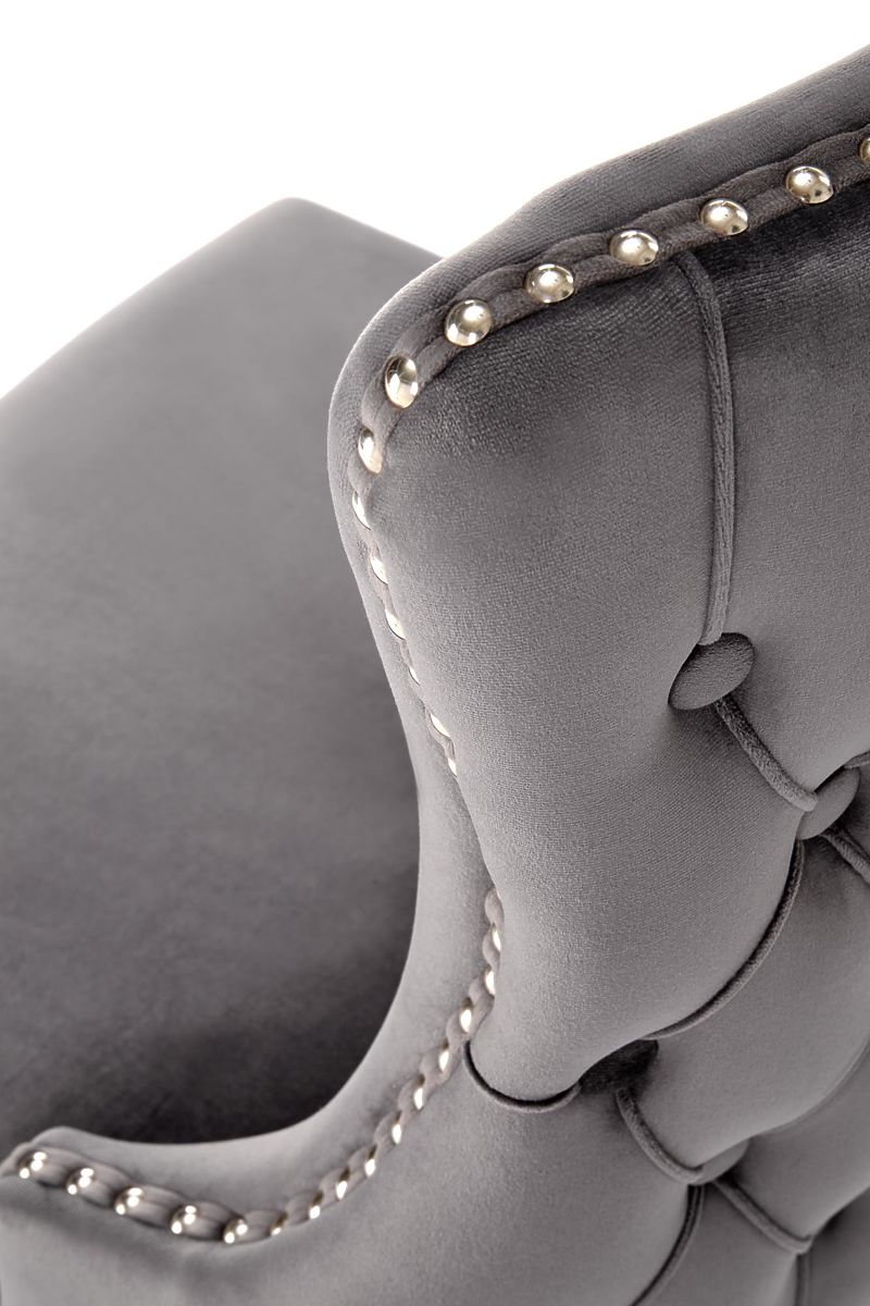 Sedia in legno massello con tessuto vellutato grigio. .. altro