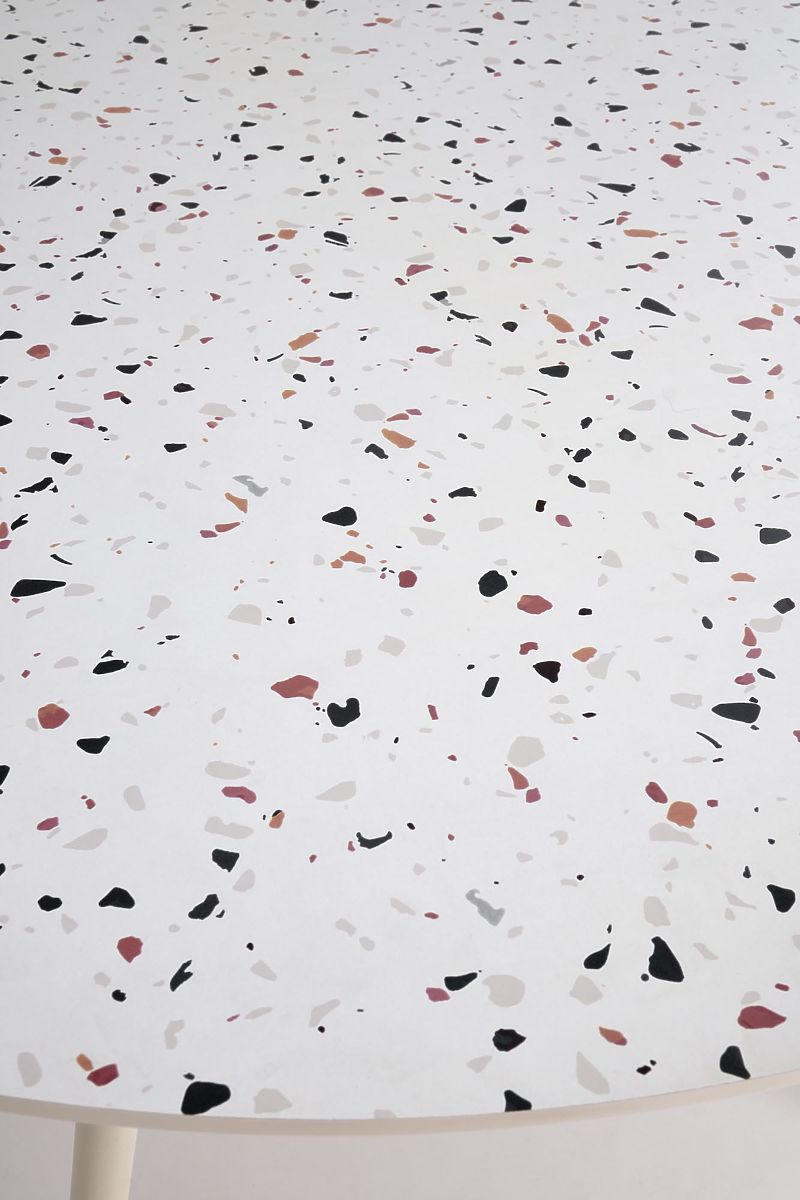 Tavolo ARAMIS con piano in terrazzo e gambe bianche. .. altro