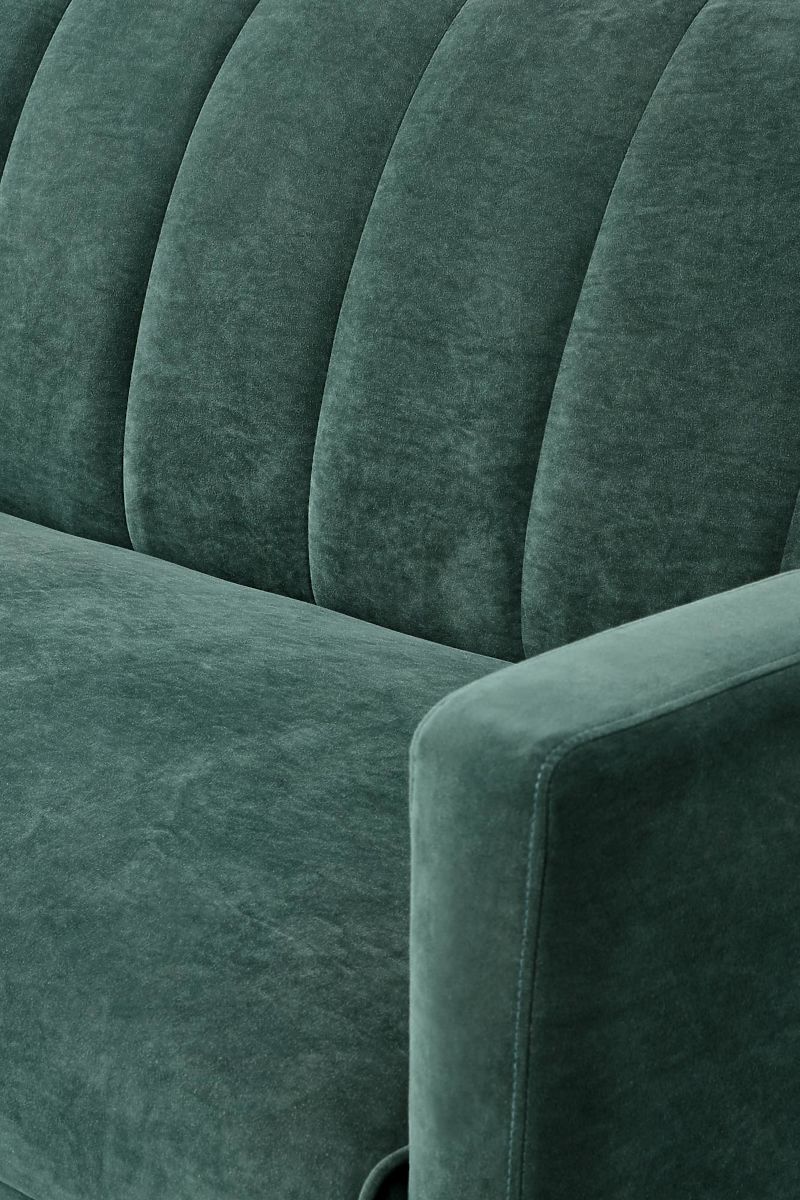 Divano letto in tessuto vellutato verde scuro. .. altro