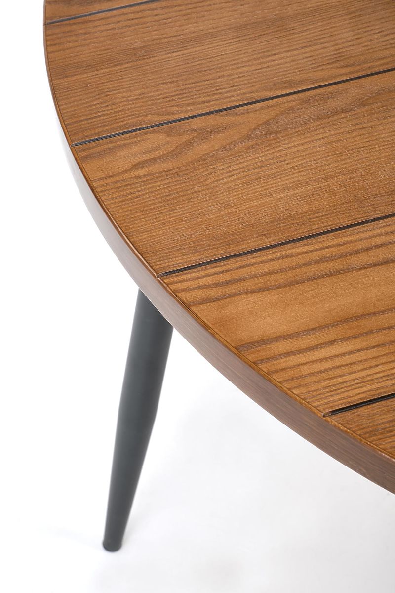 Tavolo rotondo in MDF con piano in noce e gambe nere. .. altro
