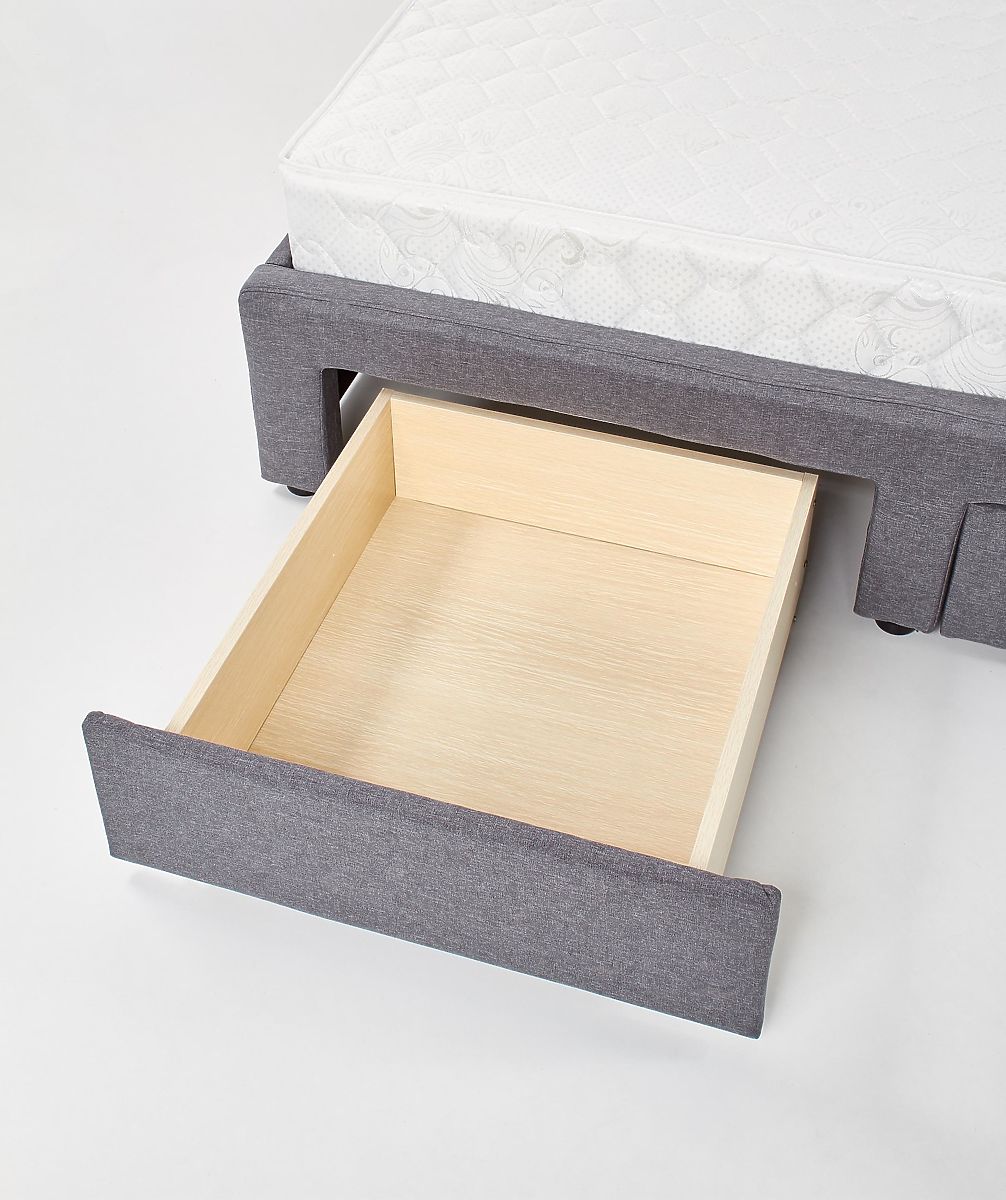 Letto con cassetti in tessuto grigio e legno nero. .. altro