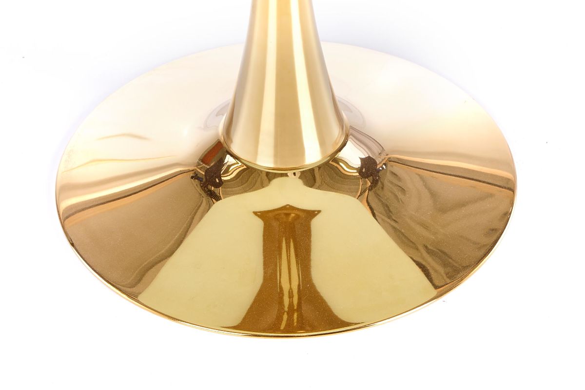 Tavolo rotondo in marmo bianco con gambe dorate. .. altro
