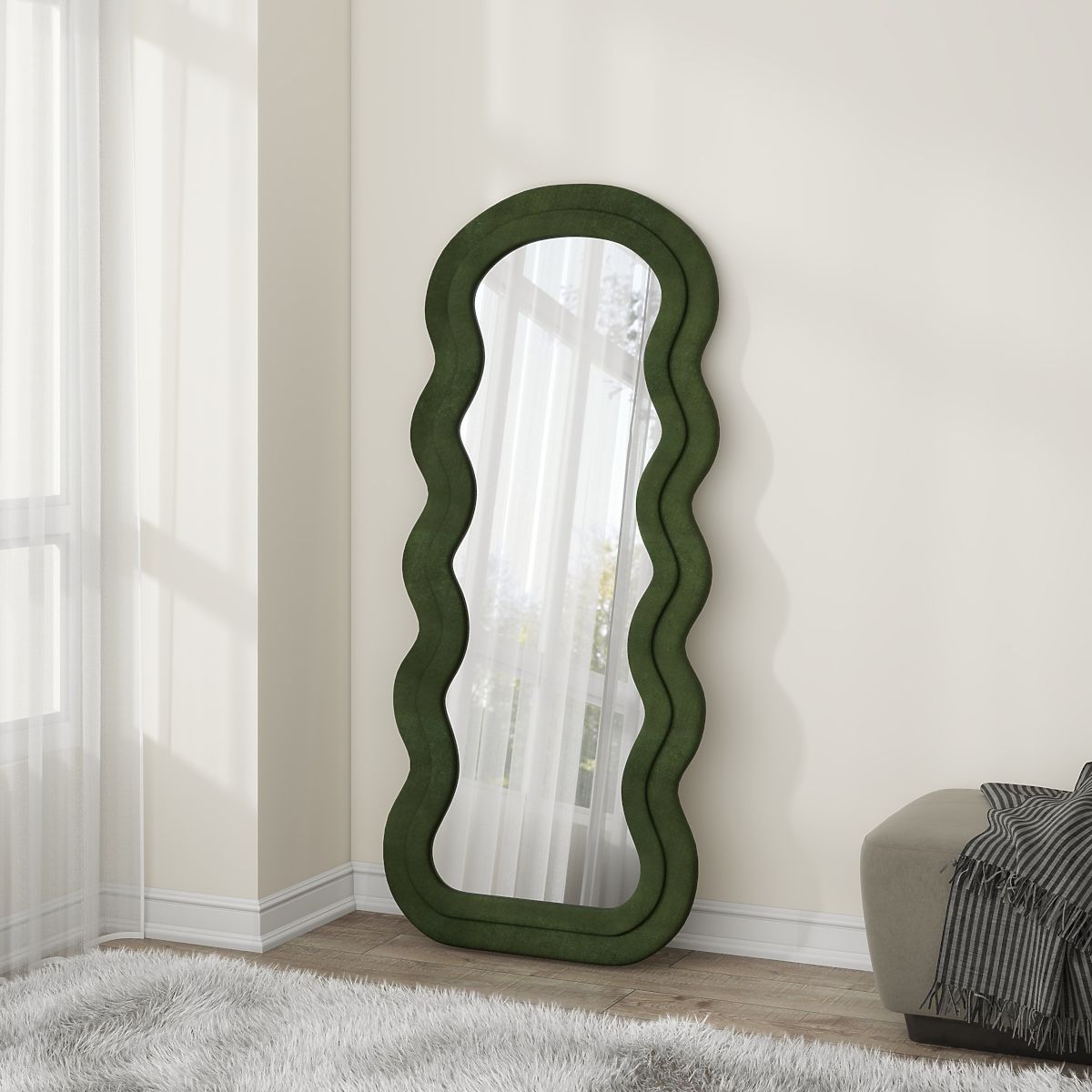 Specchio da terra o da parete con cornice in velluto oliva. .. altro