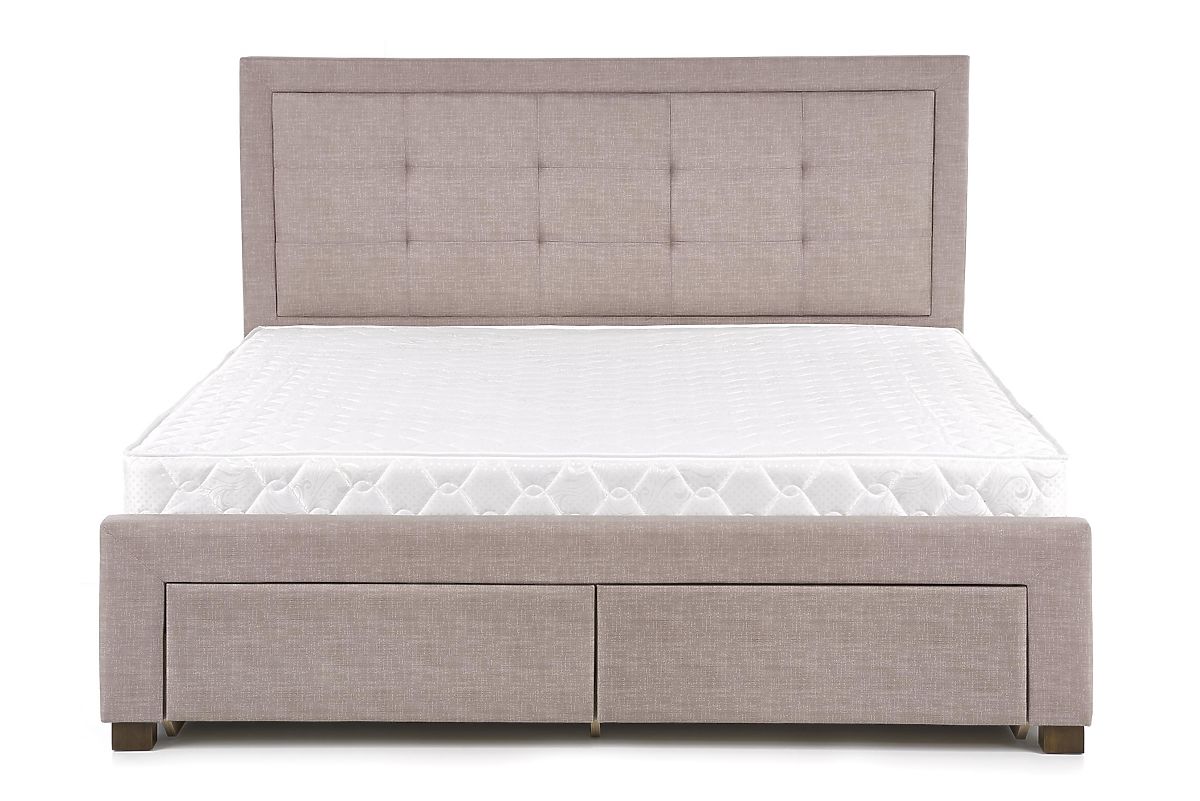Letto con cassetti in tessuto beige e legno noce. .. altro