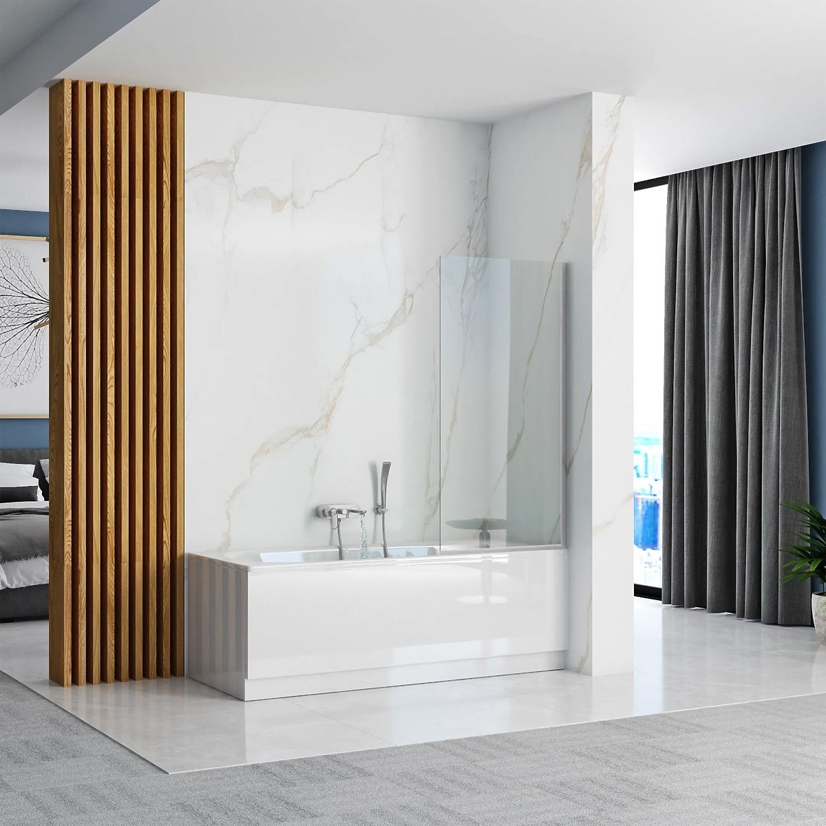 Pannello vasca fisso in cromo con vetro temperato per sicurezza ed eleganza. .. altro