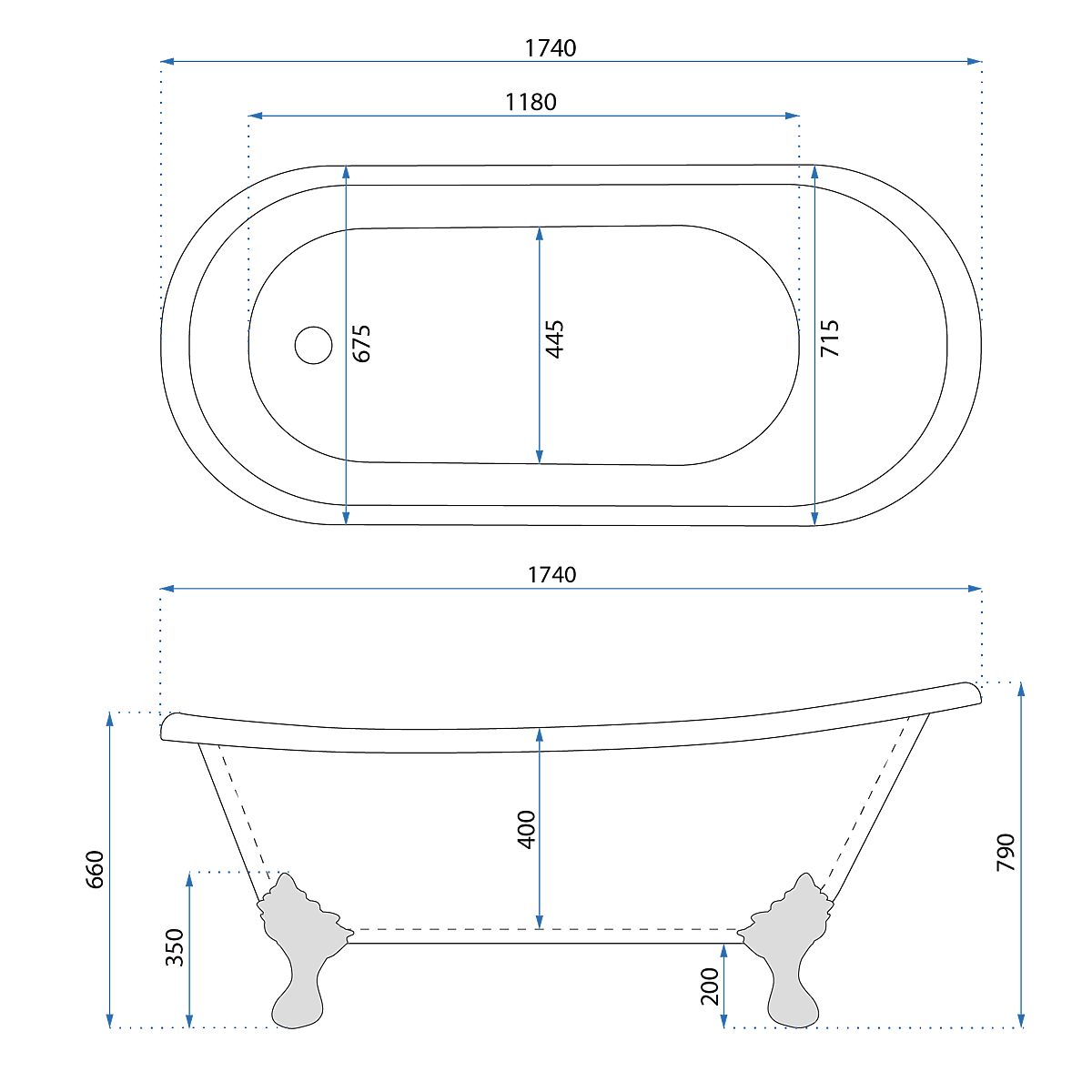 Vasca da bagno autoportante in acrilico con piedini cromati decorativi. .. altro