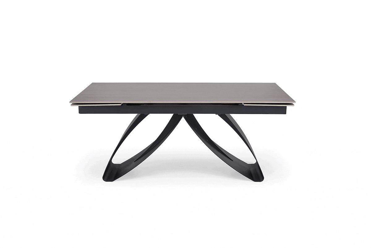 Tavolo allungabile con piano in noce e gambe nere. .. altro