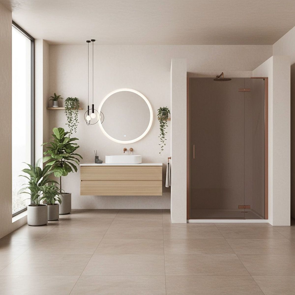 Porte doccia in vetro temperato fumé con profili in rame spazzolato. .. altro