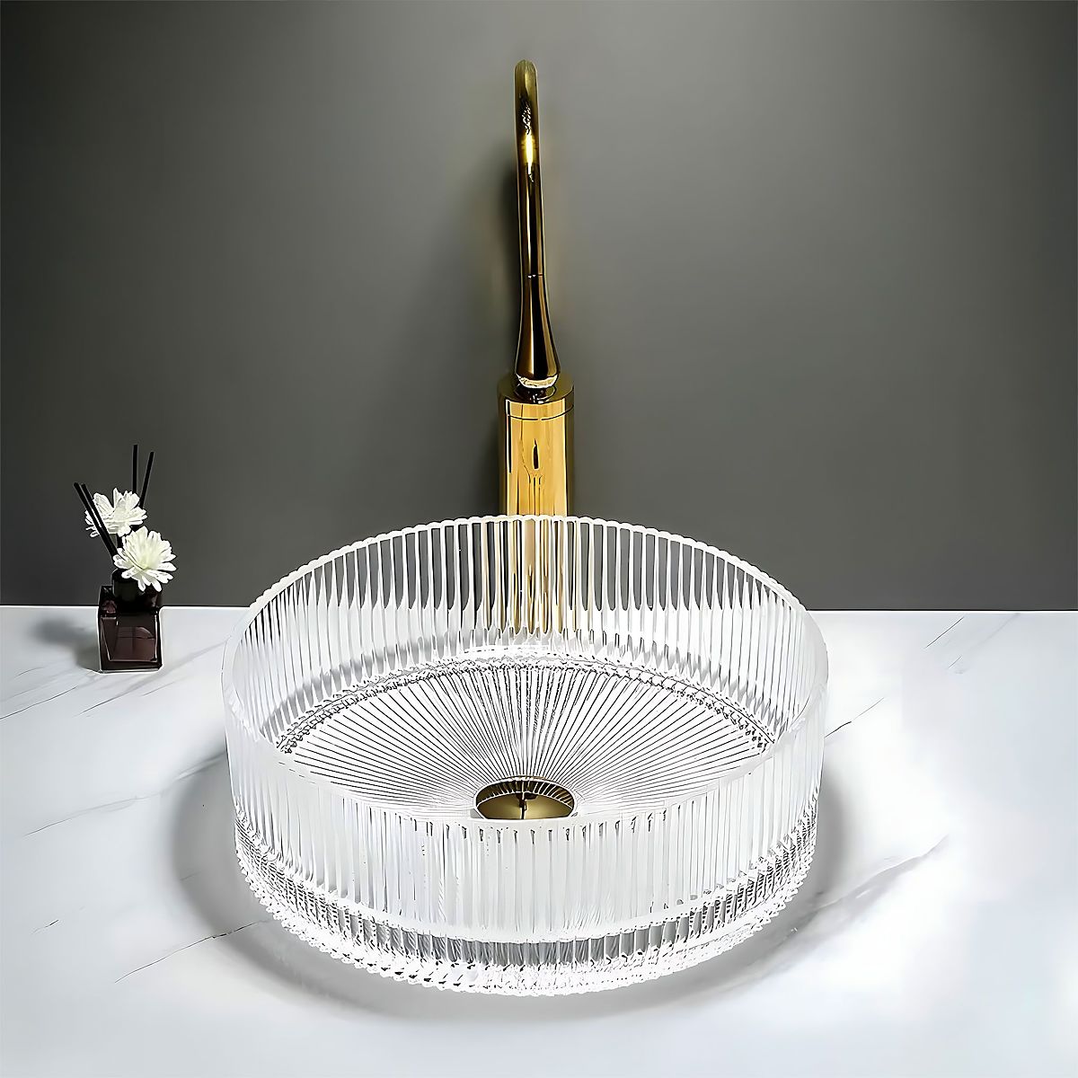 Lavabo in vetro trasparente con design moderno e compatto. .. altro