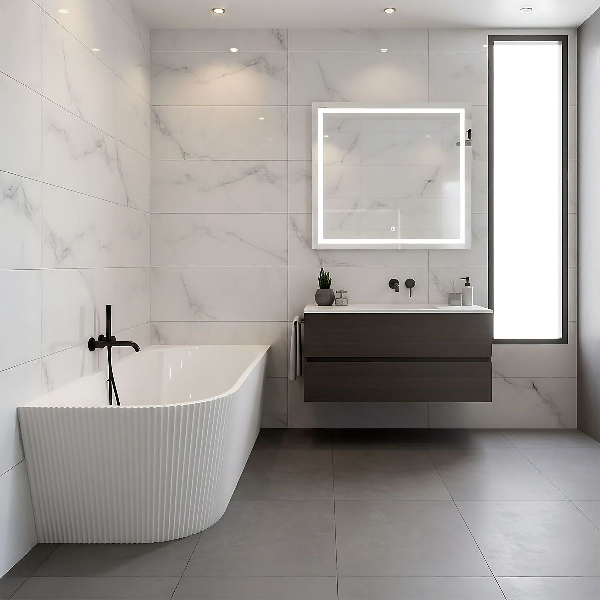 Vasca angolare in acrilico con superficie scanalata verticale. .. altro