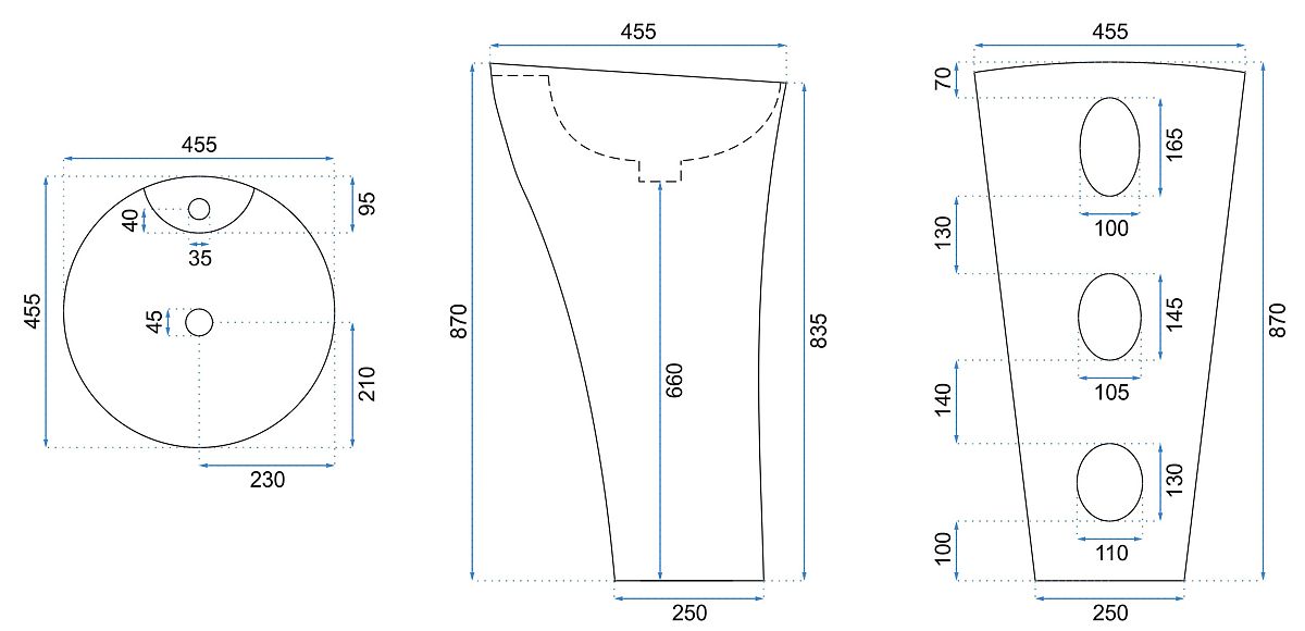 Il lavabo indipendente Rea Agnes ha dimensioni di 45,5 × 45,5 × 87 cm. La sua forma rotonda e monolitica garantisce che si adatti perfettamente sia a bagni grandi che piccoli. È il lavabo ideale per un bagno dove stile e funzionalità sono importanti.