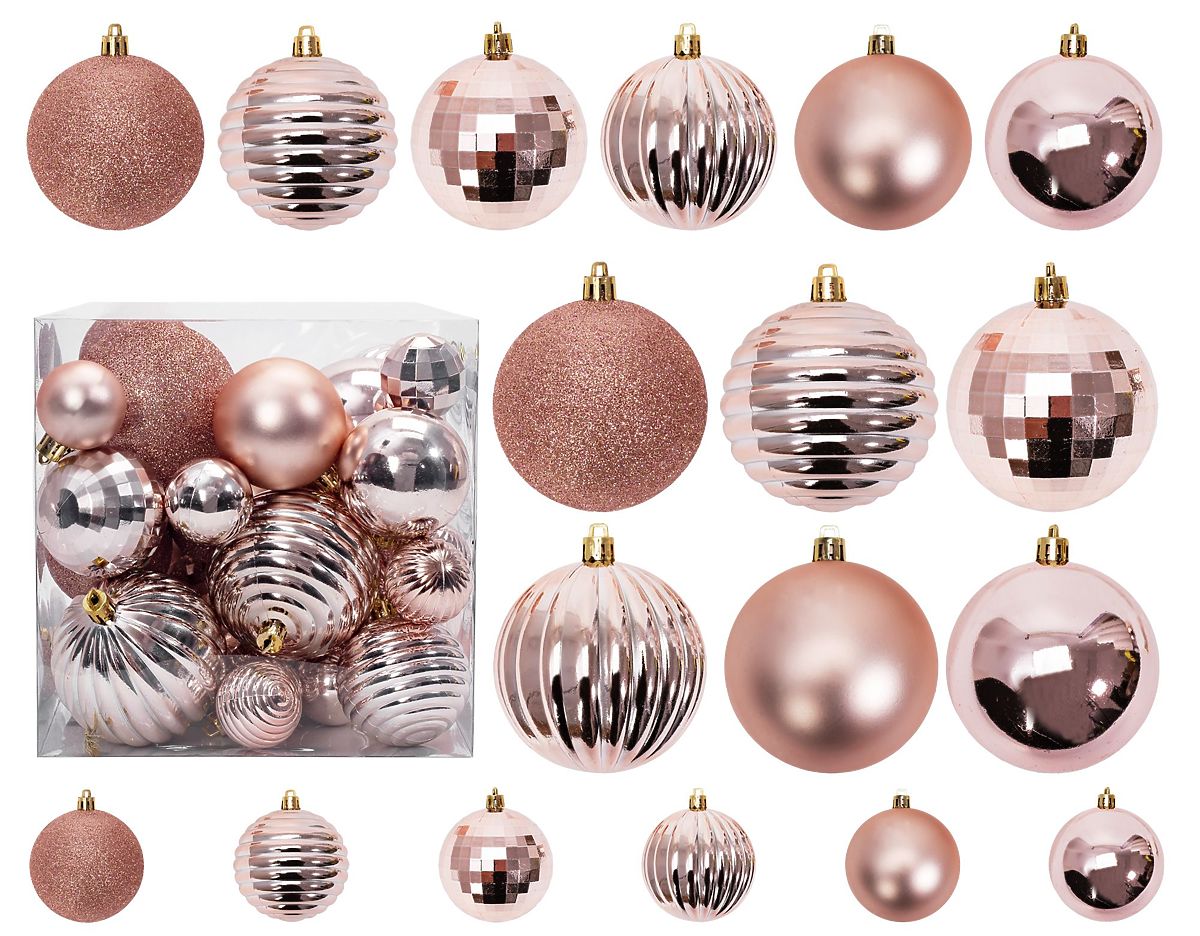 Set di palline di Natale in plastica rosa-oro, resistenti agli urti. .. altro