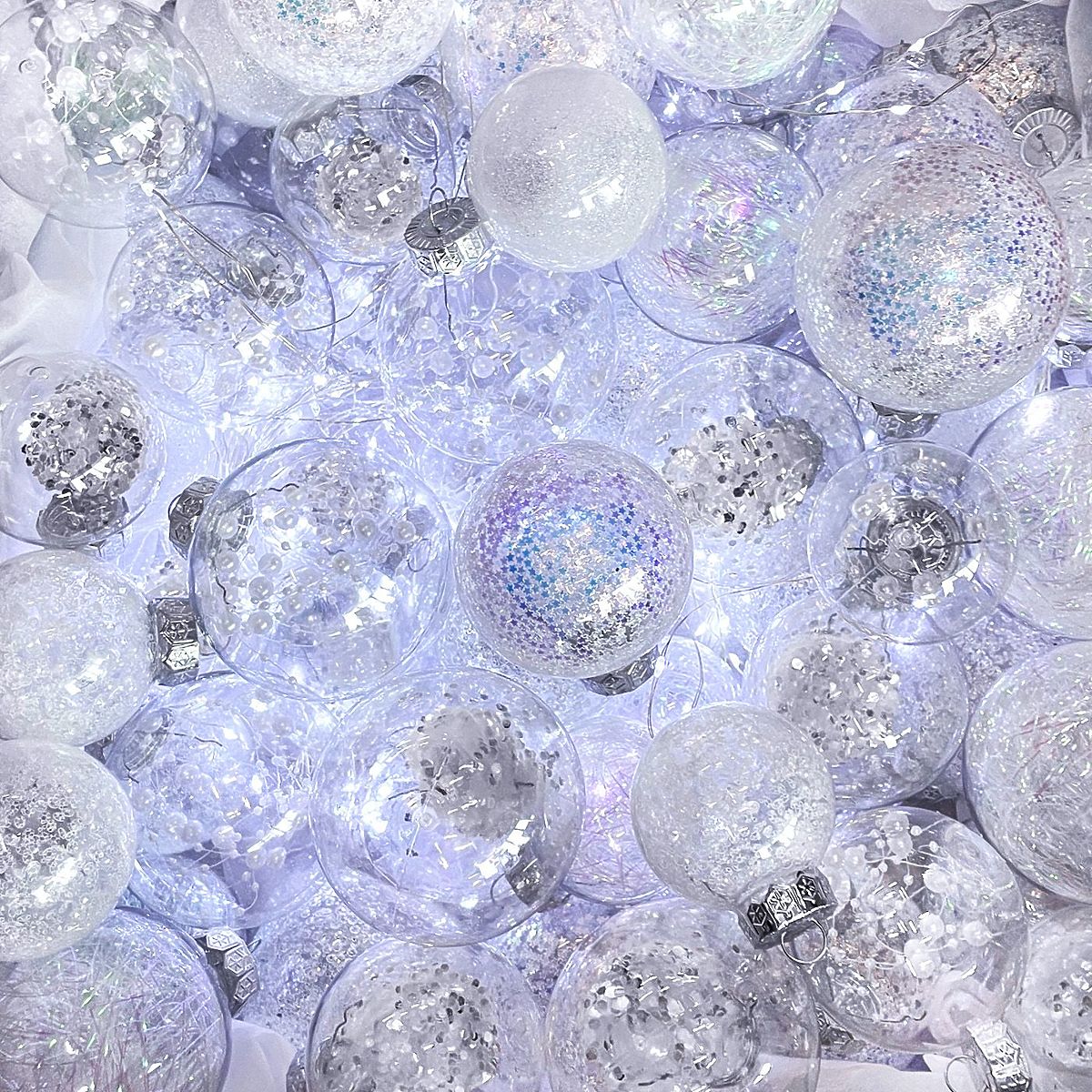 Decorazioni natalizie bianche con perline lucenti all'interno. .. altro