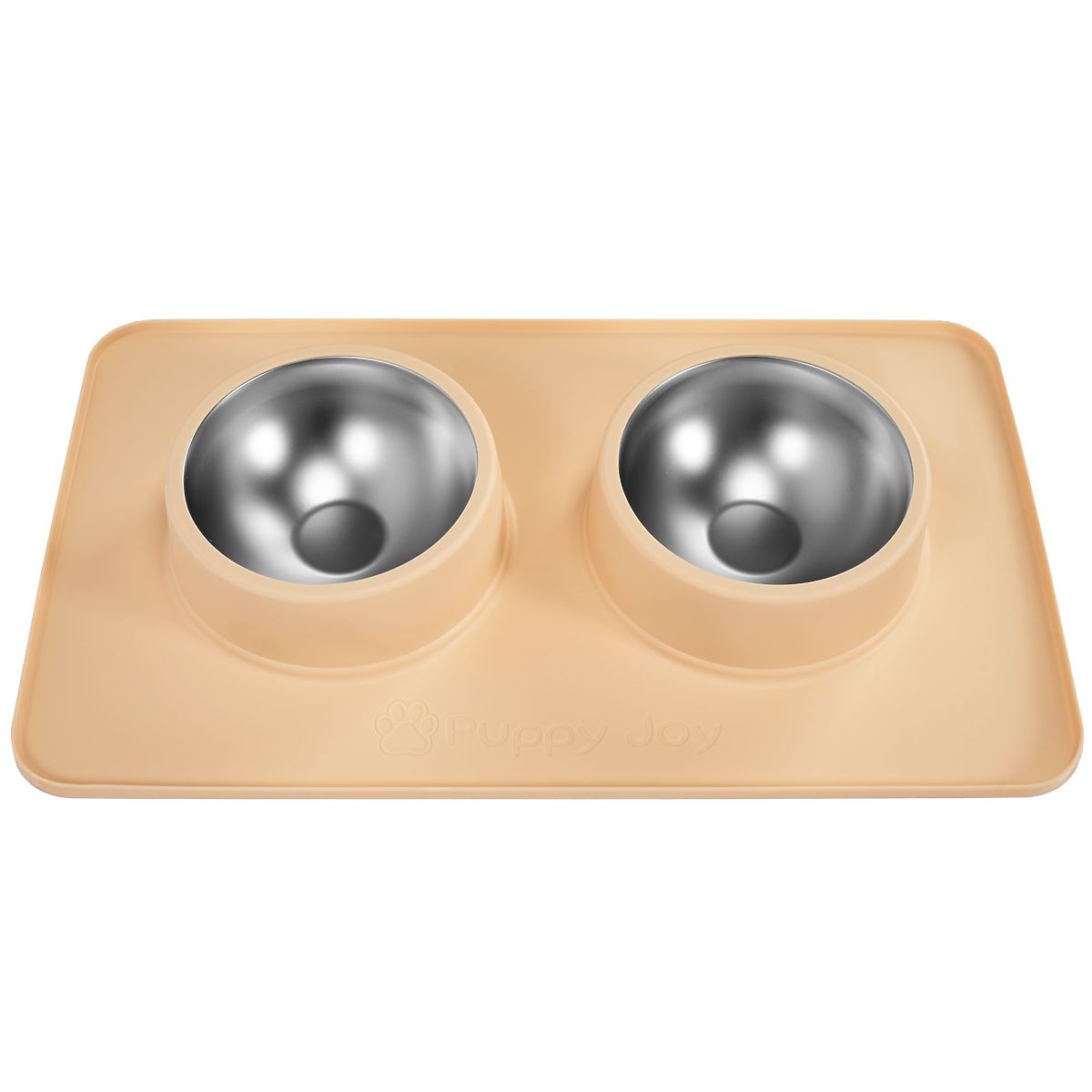 Lukahome.it » Per animali domestici / Cura o animali domestici / Ciotole in Metallo per Cane o Gatto con Tappetino Antiscivolo Beige PJ-089