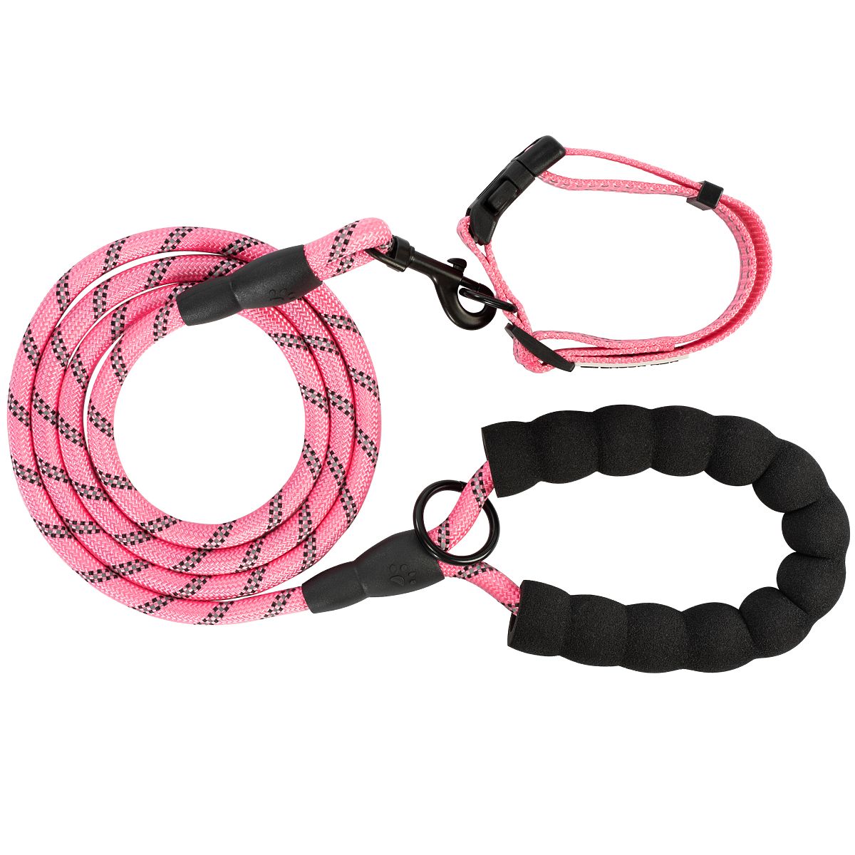 Lukahome.it » Per animali domestici / Guide e imbracature / Guinzaglio riflettente e collare per cane PJ-036 Rosa