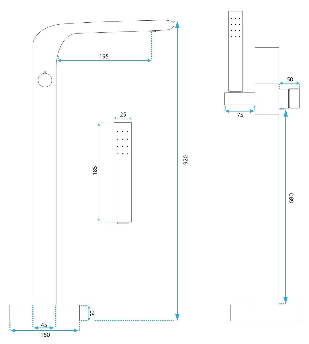 Rubinetto da vasca moderno e funzionale per installazione a pavimento. .. altro