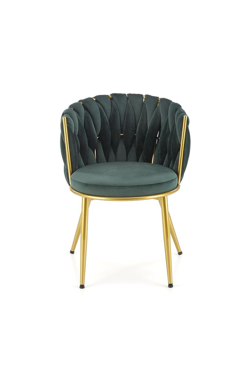 Sedia in velluto verde scuro con struttura in acciaio oro. .. altro