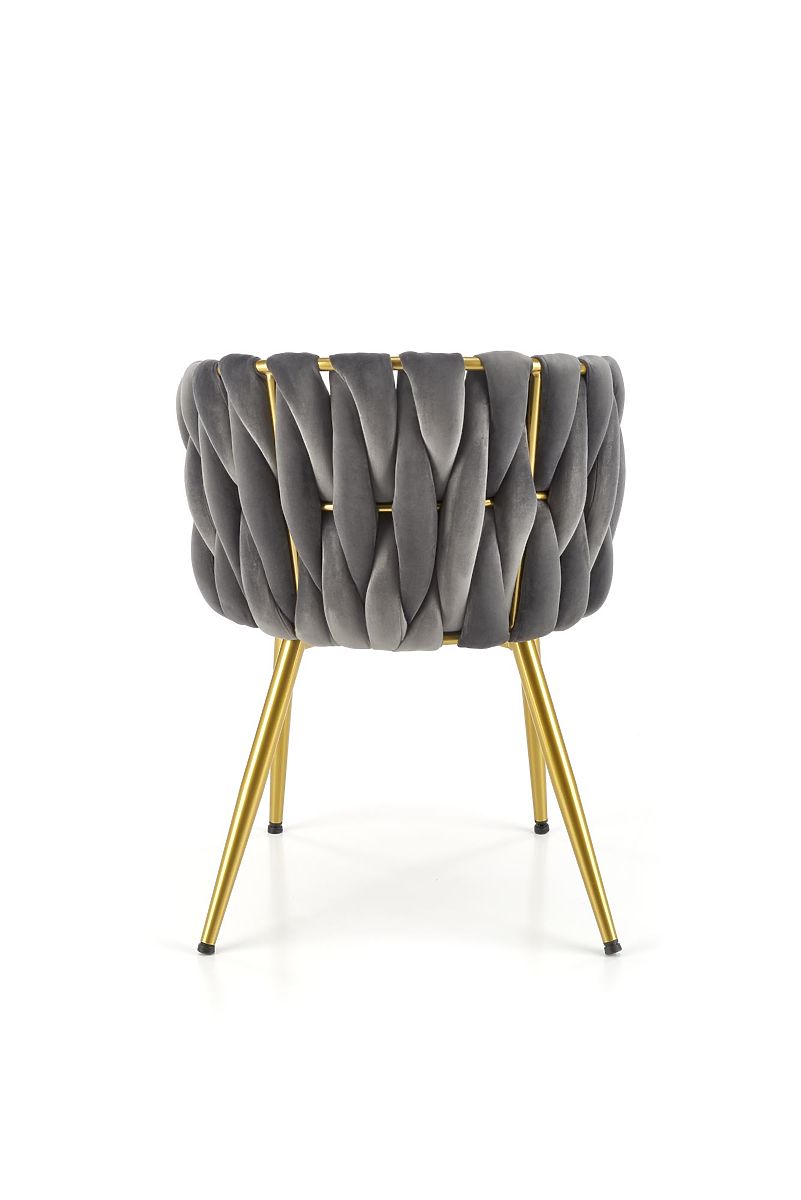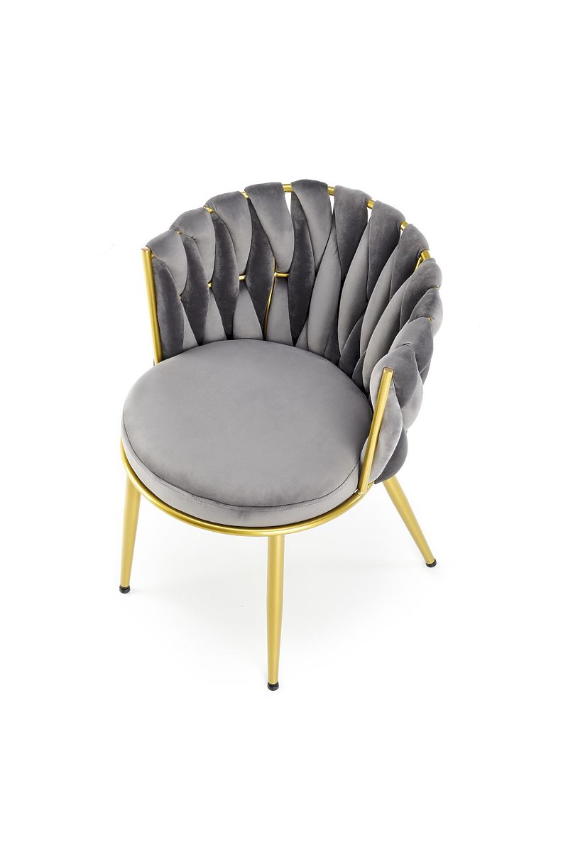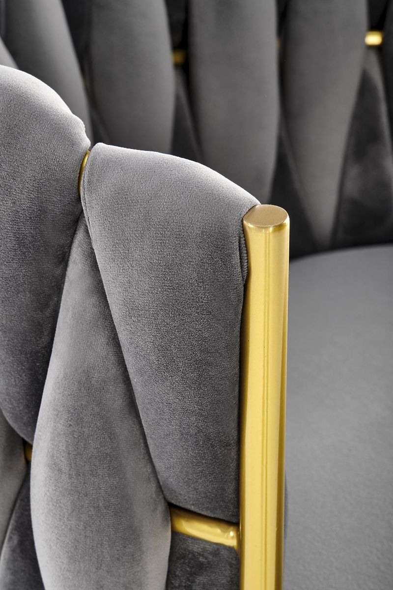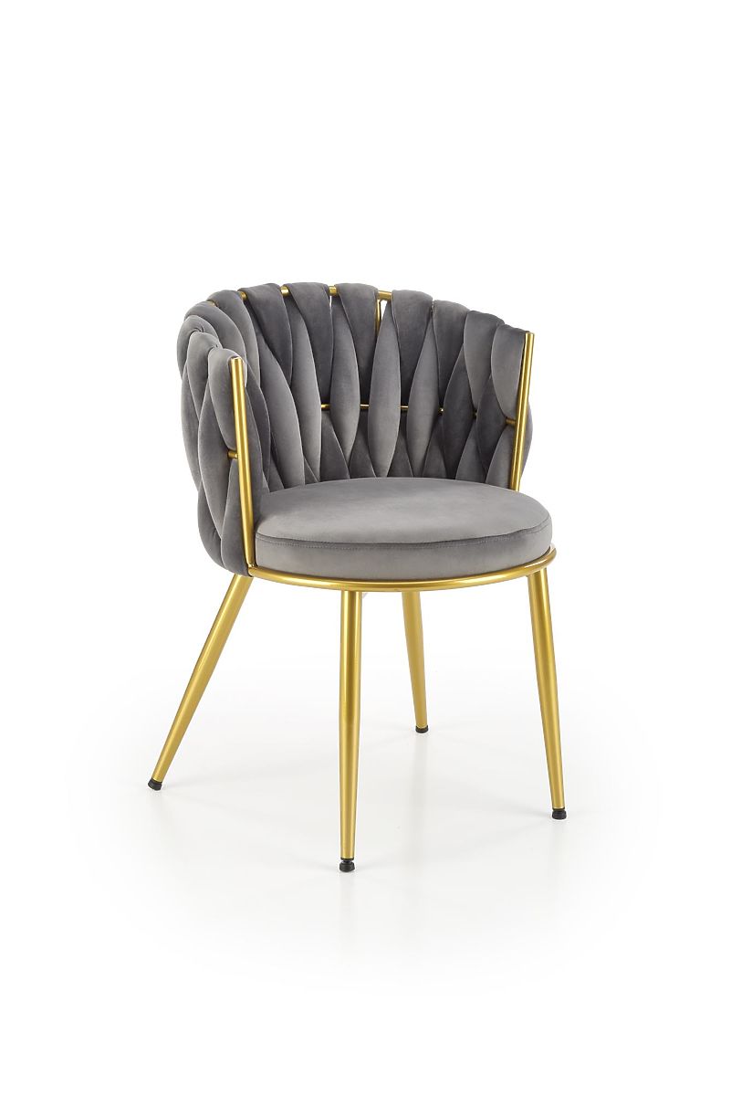 Sedia in velluto grigio con dettagli dorati. .. altro