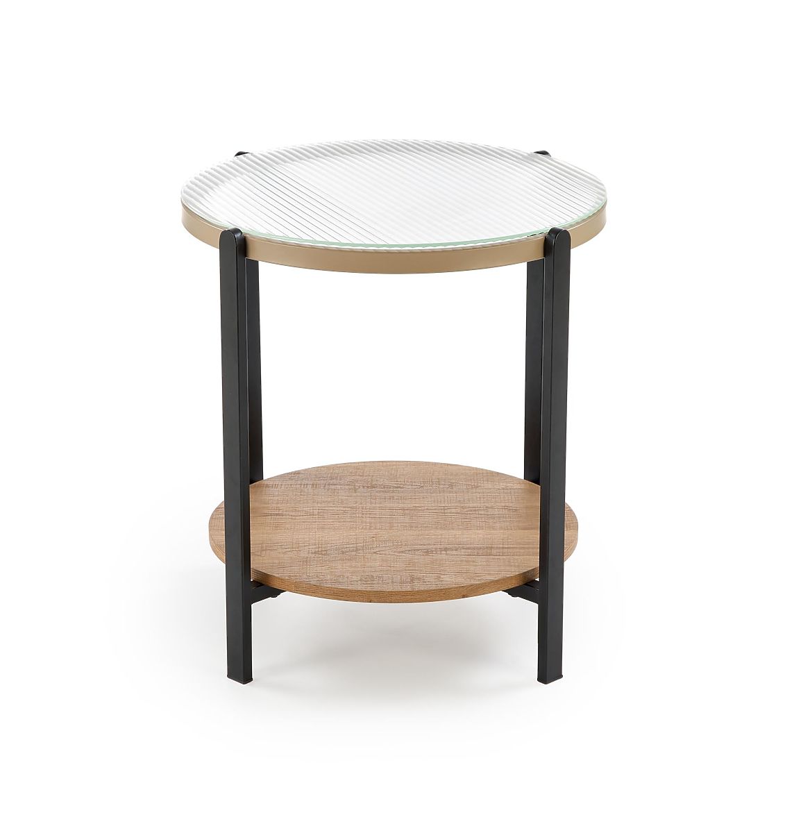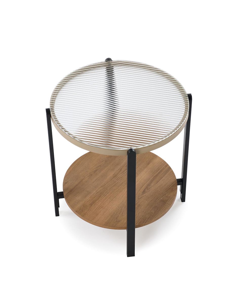 Tavolino in vetro e MDF impiallacciato, colore naturale e nero. .. altro