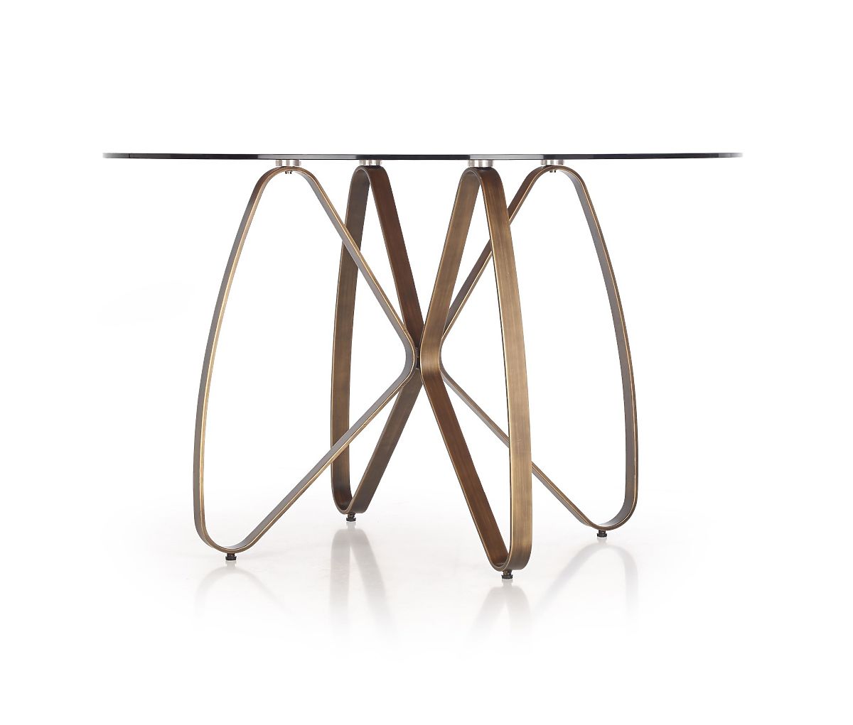 Tavolo in vetro e acciaio laccato con gambe oro antico. .. altro