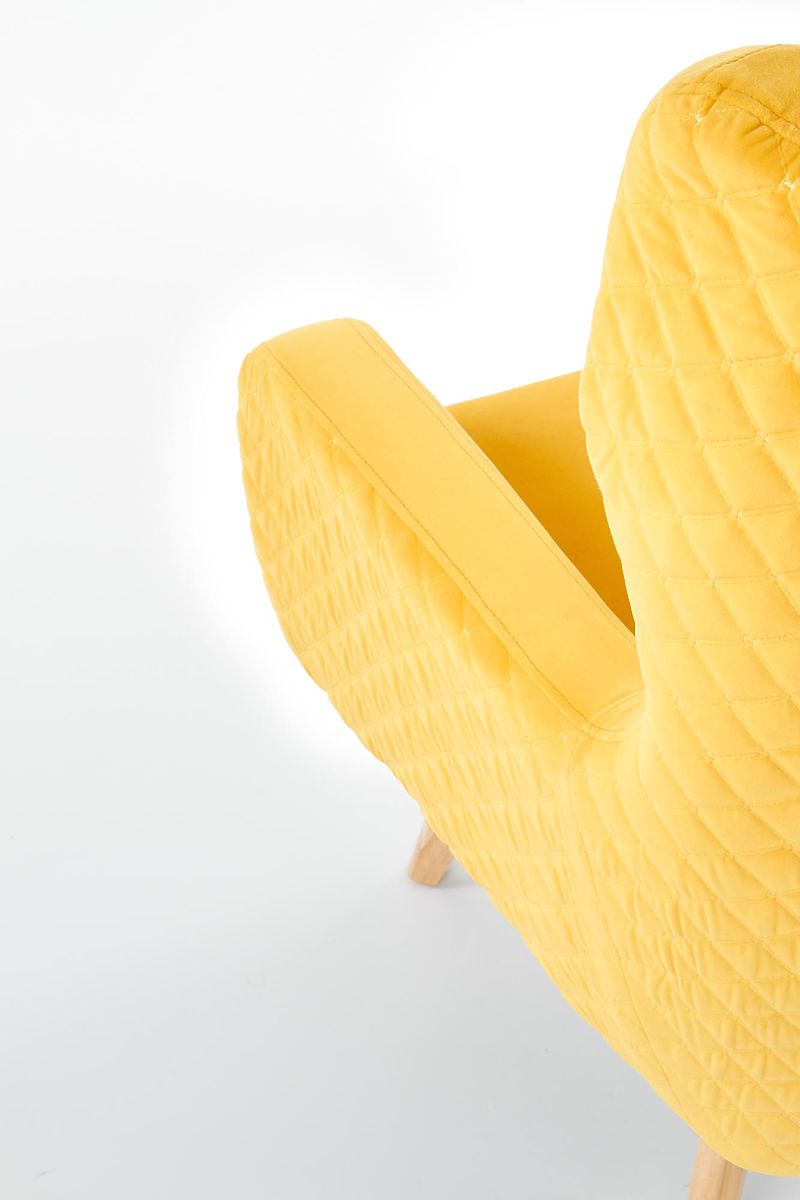 Poltrona relax in tessuto giallo con gambe in legno naturale. .. altro