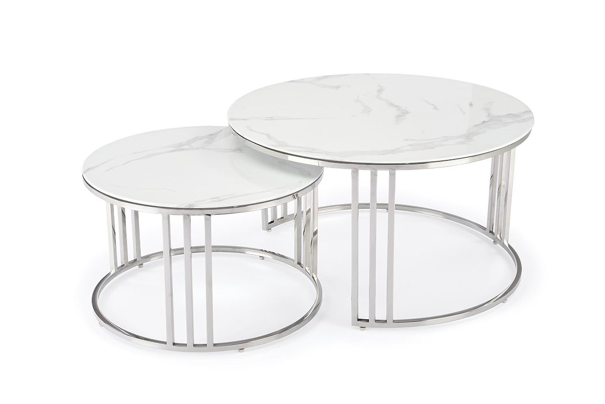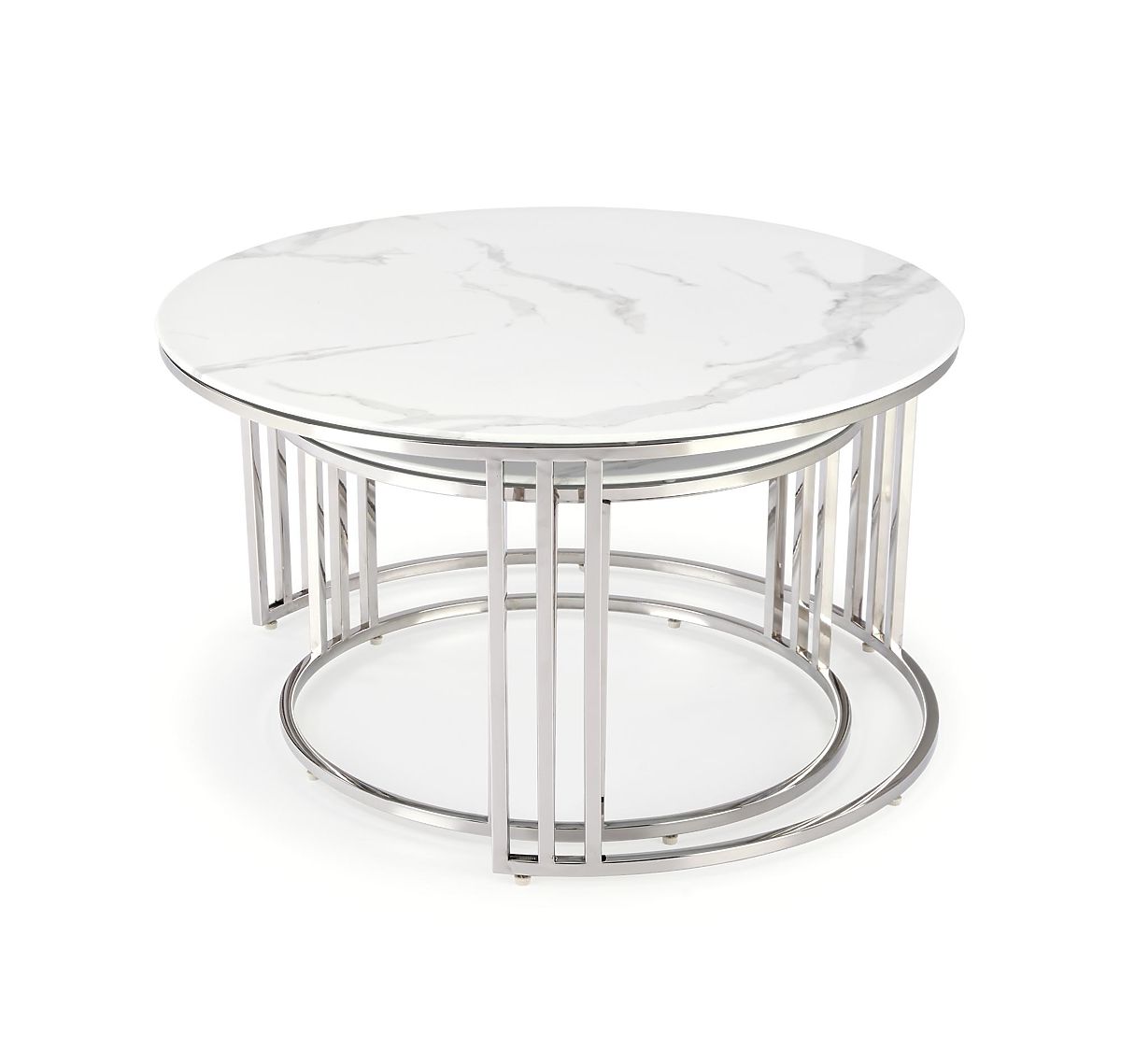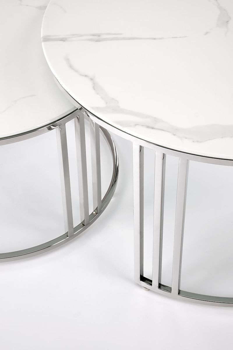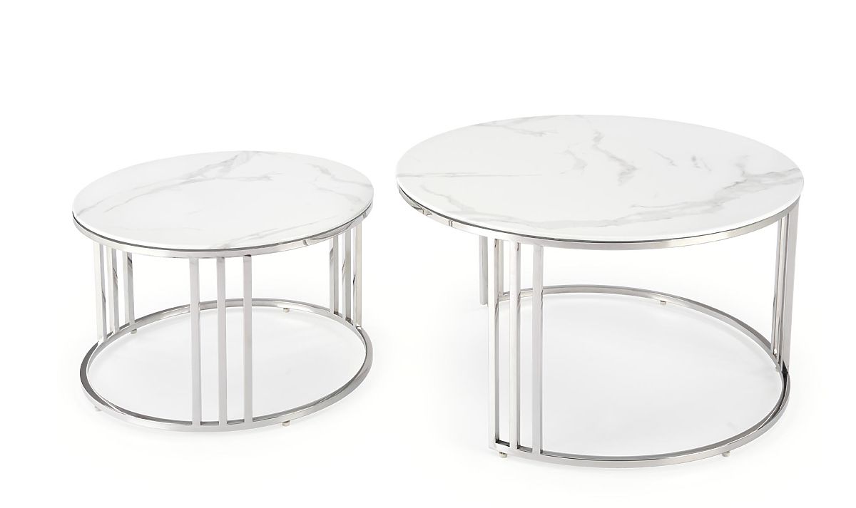 Lukahome.it » Tavoli e tavolini da caffè / Tavolini da caffè / MERCURY 2 set di 2 panche, struttura - argento, vetro - marmo bianco (1p=1pz)