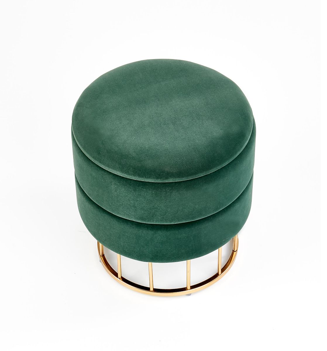 Pouf in tessuto verde scuro con dettagli in oro. .. altro
