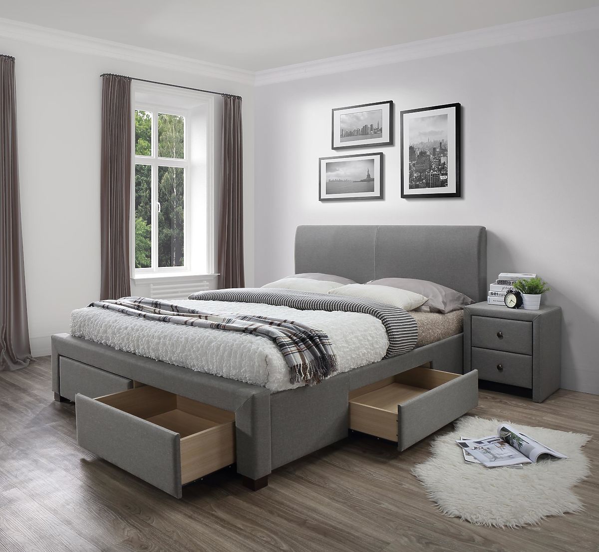 Lukahome.it » Letti / letti matrimoniali / Letti 140x200 / Letto imbottito MODENA 140 cm con cassetti grigio (6p=1ks)