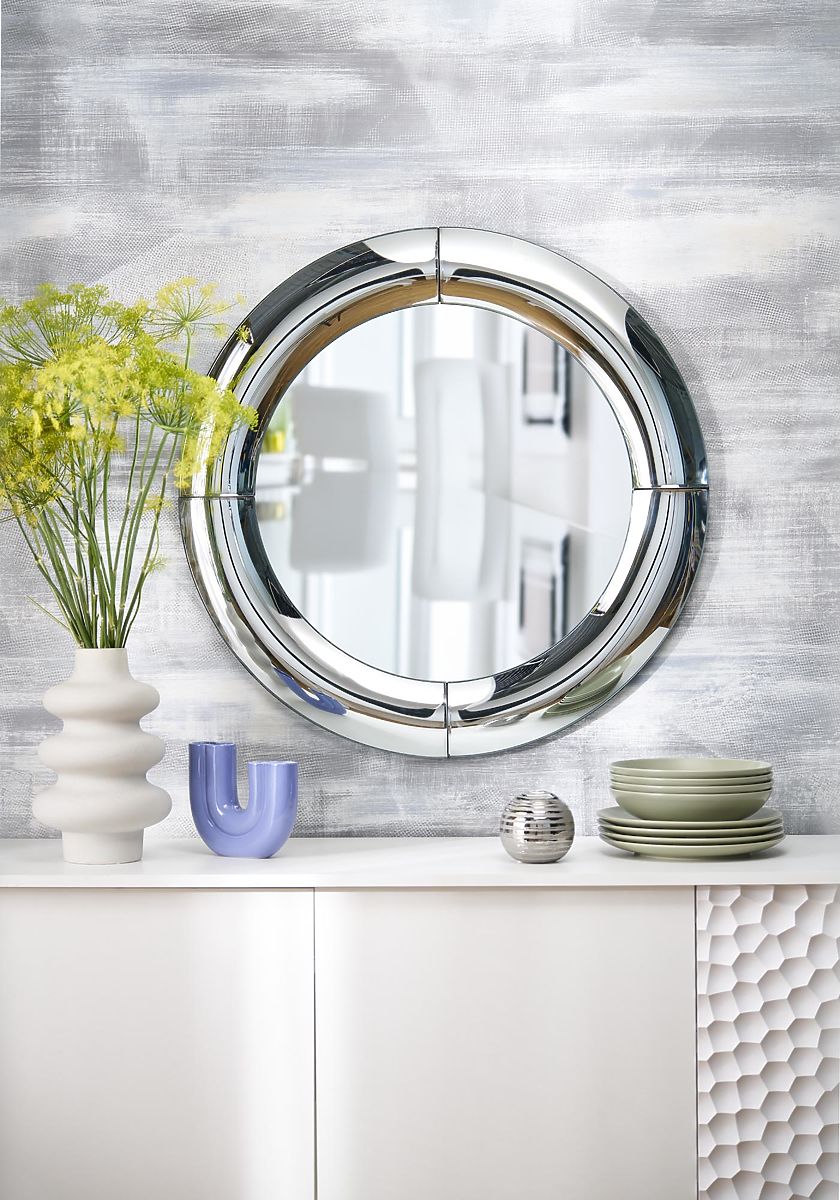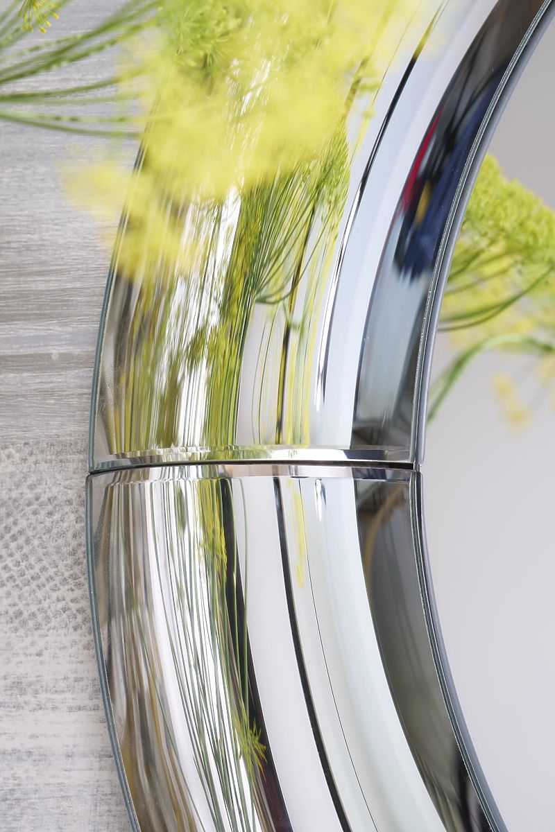 Specchio da parete con cornice in vetro sfaccettato, colore argento. .. altro