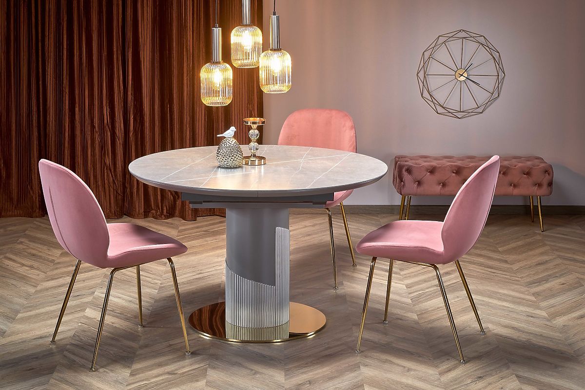Lukahome.it » Sala da pranzo e cucina / Tavoli da pranzo / Tavolo allungabile MUSCAT piano - marmo grigio, gambe - grigio chiaro / oro