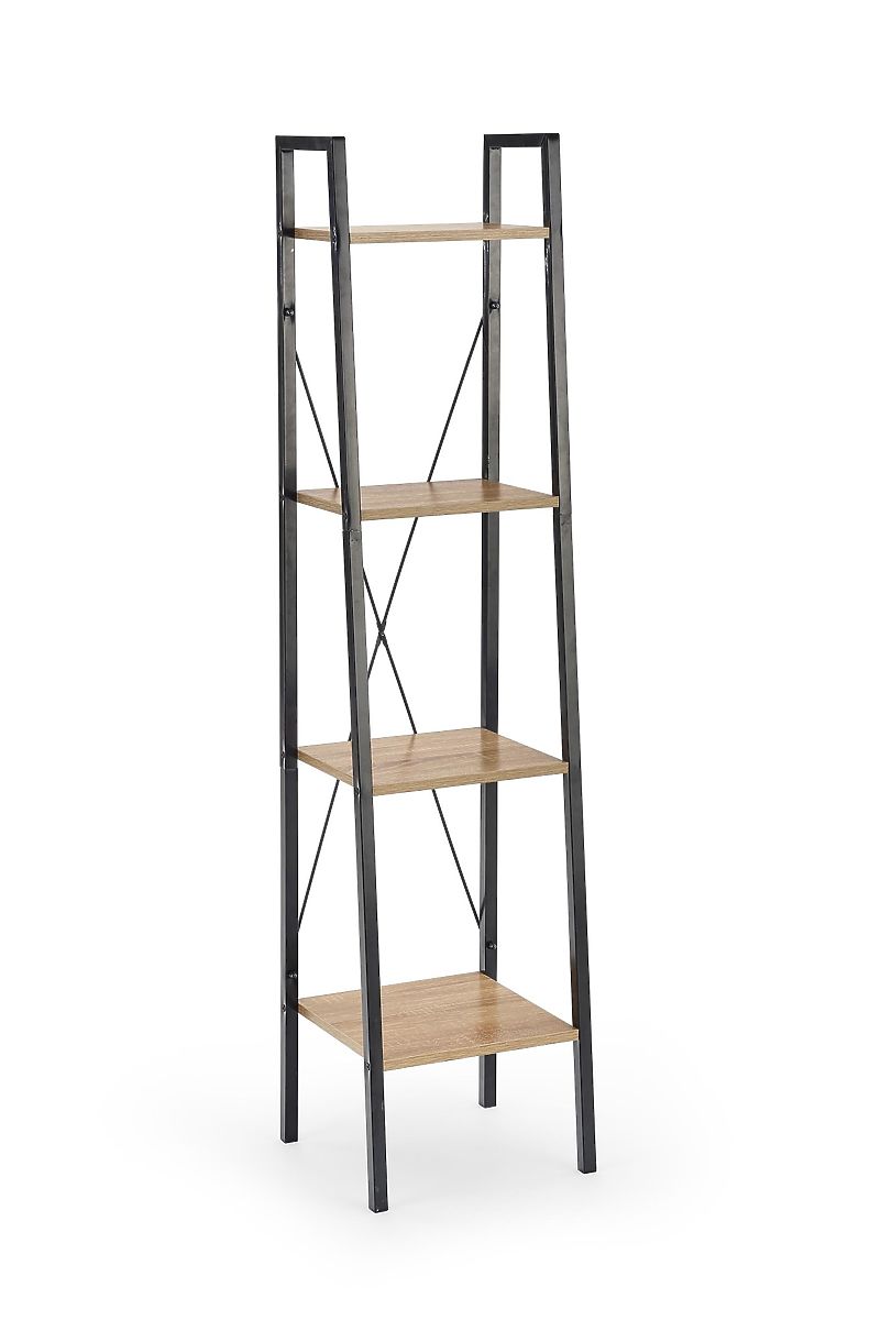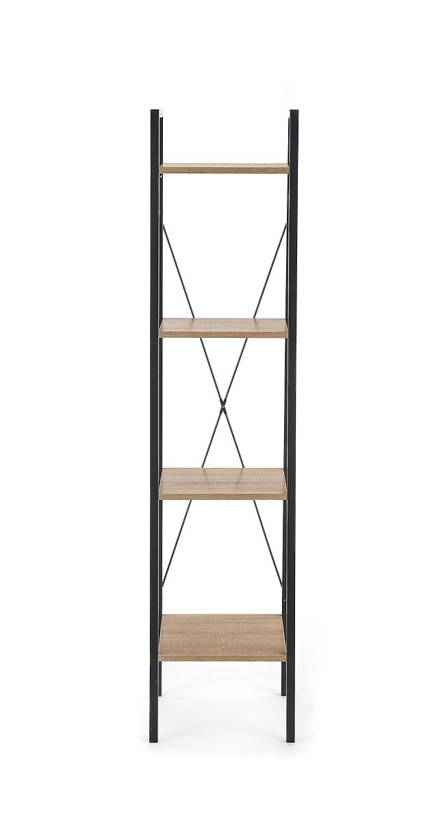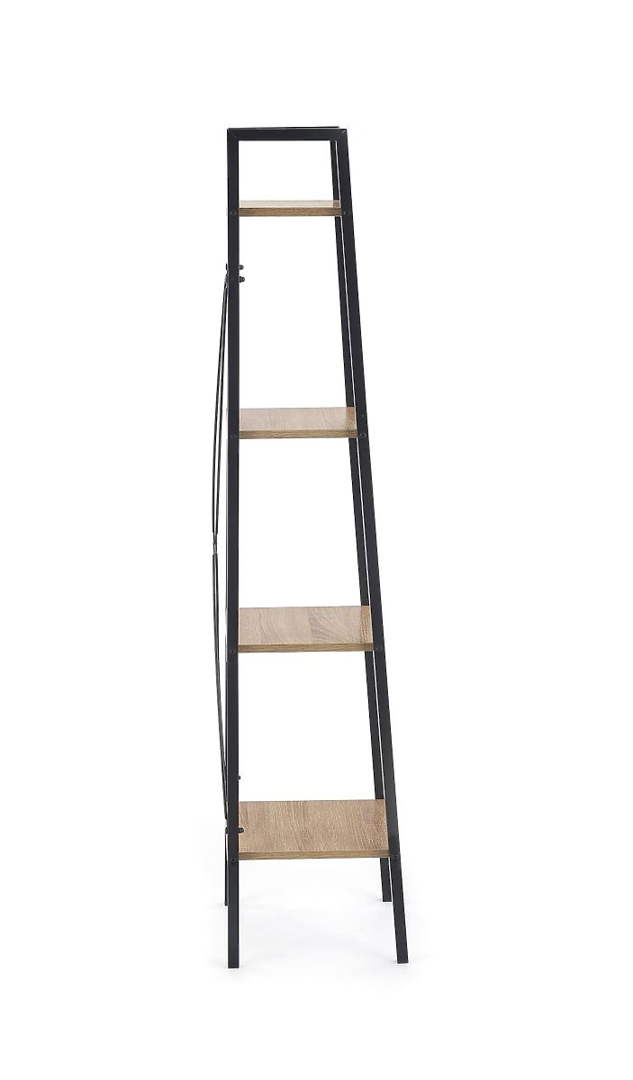 Lo scaffale è composto da quattro ripiani aperti che forniscono uno spazio di archiviazione organizzato per libri, decorazioni o accessori. I ripiani in truciolare laminato con finitura rovere sonoma sono completati da una struttura robusta in acciaio verniciato a polvere di colore nero, che garantisce stabilità e sottolinea l'aspetto industriale.