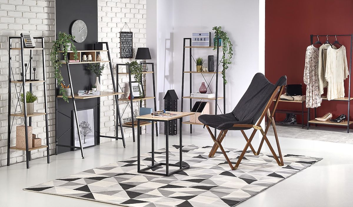 Scaffale Narvik in stile loft con ripiani aperti e struttura in acciaio nero. .. altro