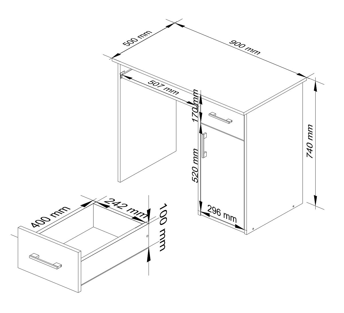 Scrivania marrone scuro con cassetto e ripiano tastiera estraibile. .. altro
