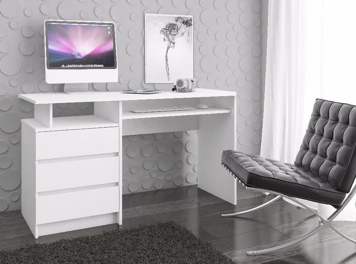 La scrivania bianca autoportante è un mobile dal design moderno che si adatta perfettamente agli standard di arredamento contemporanei. Colpisce per la sua semplicità ed eleganza, in un'elegante tonalità bianca. La scrivania include tre cassetti spaziosi, una mensola aperta, un ripiano estraibile per la tastiera e un ampio piano di 135 centimetri. La scrivania autoportante CLP è ideale sia per l'ufficio che per lo studio domestico. Questa offerta soddisferà sicuramente le aspettative di coloro per cui il piano di lavoro è fondamentale. La sua profondità è fino a 60 centimetri, permettendo un uso confortevole del computer e di altri accessori da ufficio. Il prodotto è anche popolare come tavolo da gioco, dove lo spazio e il comfort dell'utente durante lunghe sessioni di gioco sono molto importanti.