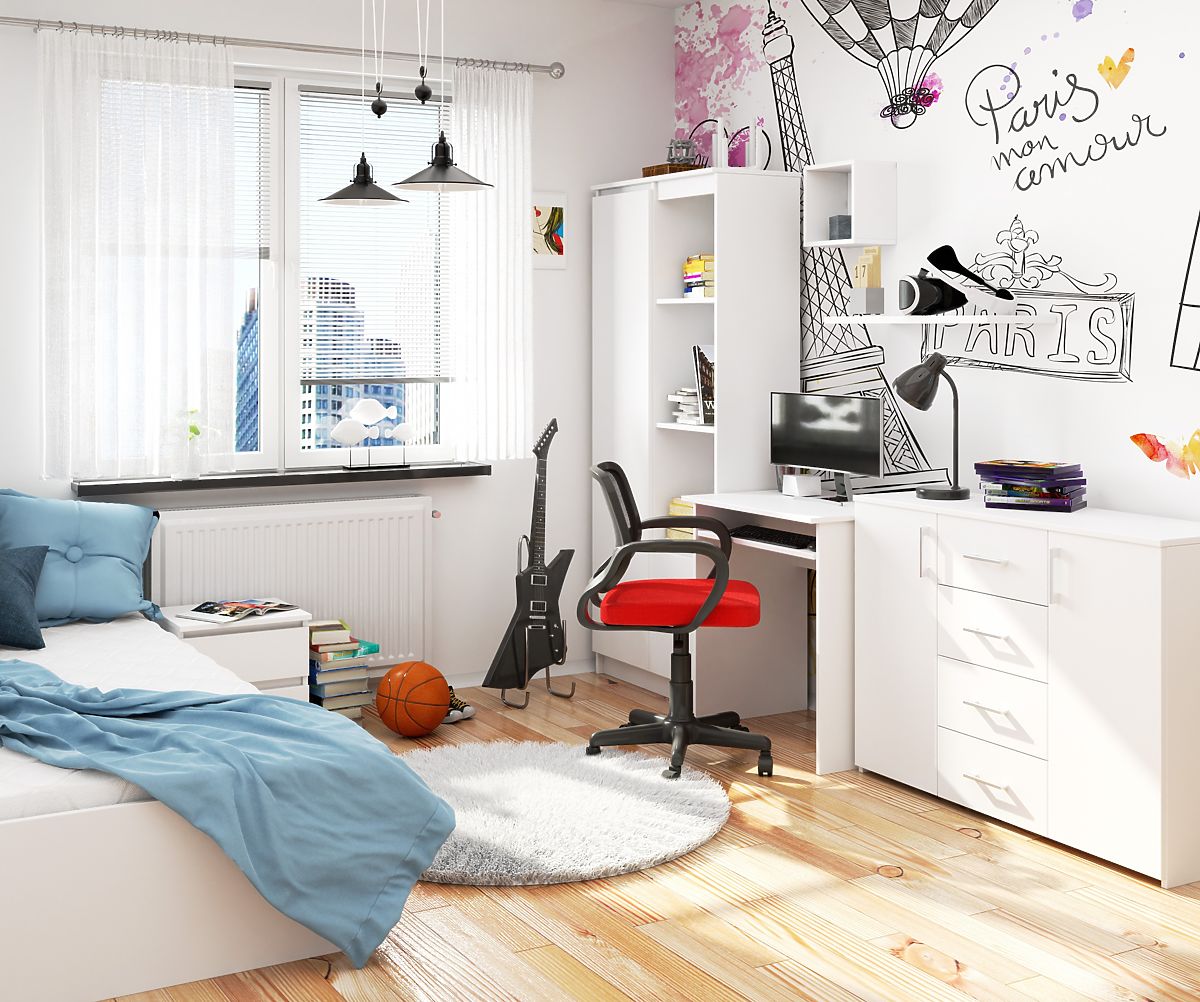 La piccola scrivania bianca STAR, libera e autoportante, è progettata principalmente per le camere dei bambini e degli studenti.