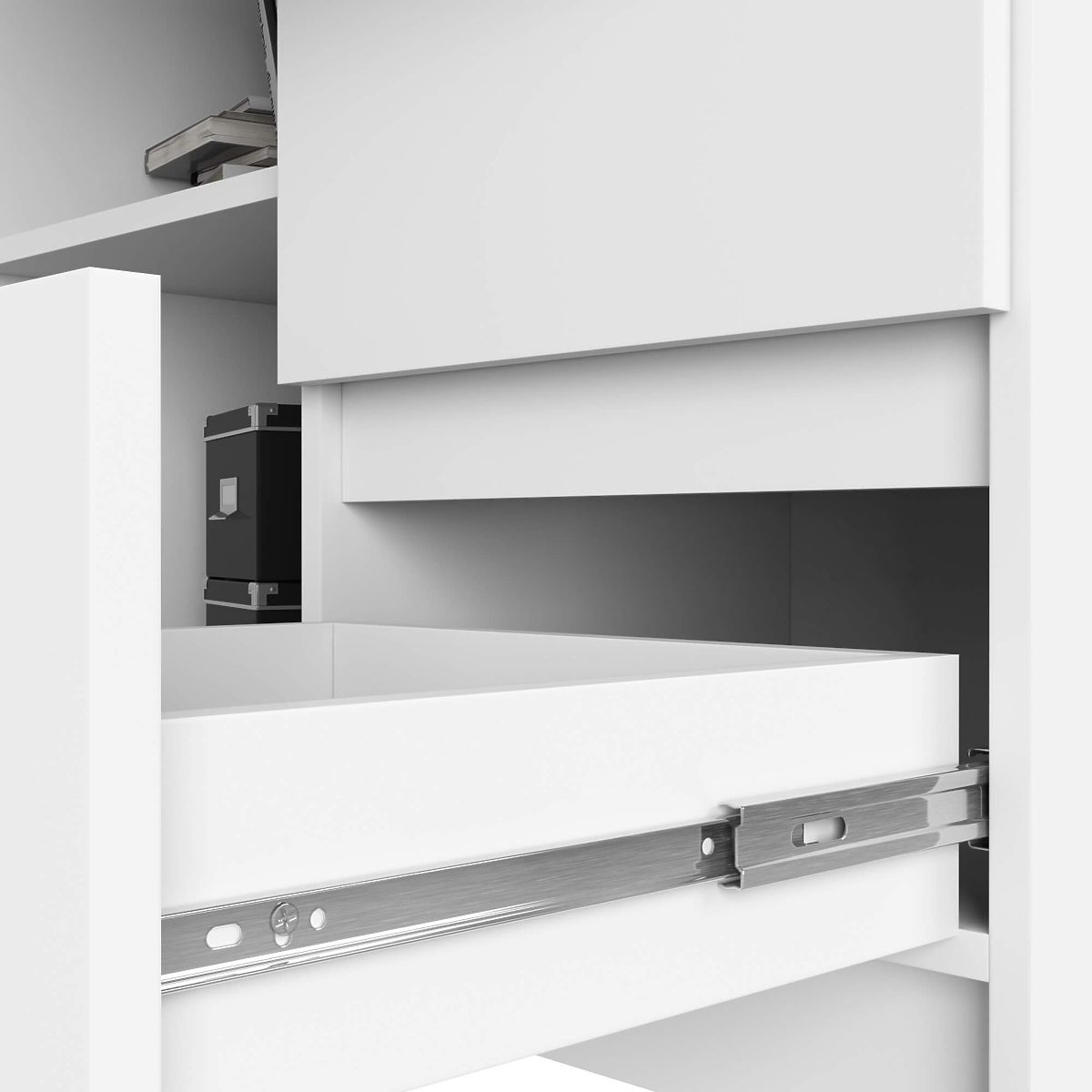 La nostra scrivania ha 3 cassetti spaziosi che scorrono su guide a sfera in metallo, quindi non avrai problemi a vedere e trovare i tuoi documenti e libri all'interno.