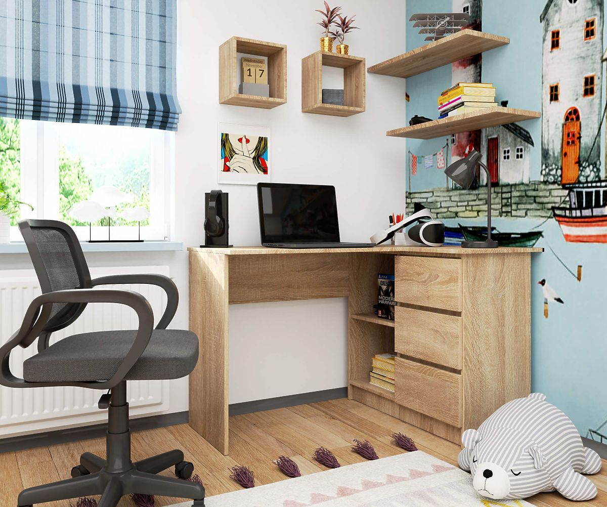 Il modello presentato è: Scrivania angolare 3 cassetti B16 destra rovere sonoma