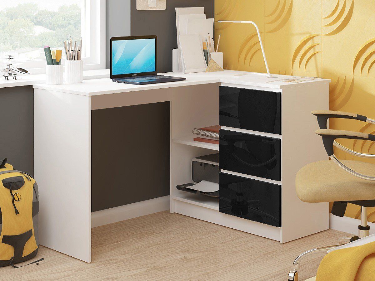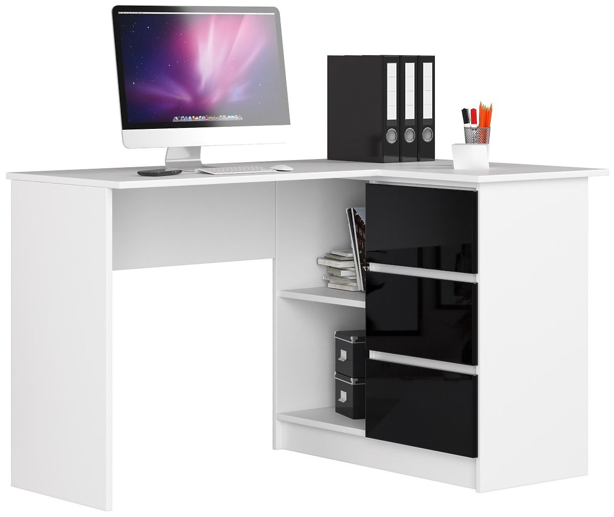 Lukahome.it » Tabelle e tavoli / Scrivere tavoli / SCRIVANIA ANGOLARE B16 124 cm DESTRA 3 CASSETTI PK BIANCO / NERO LUCIDO