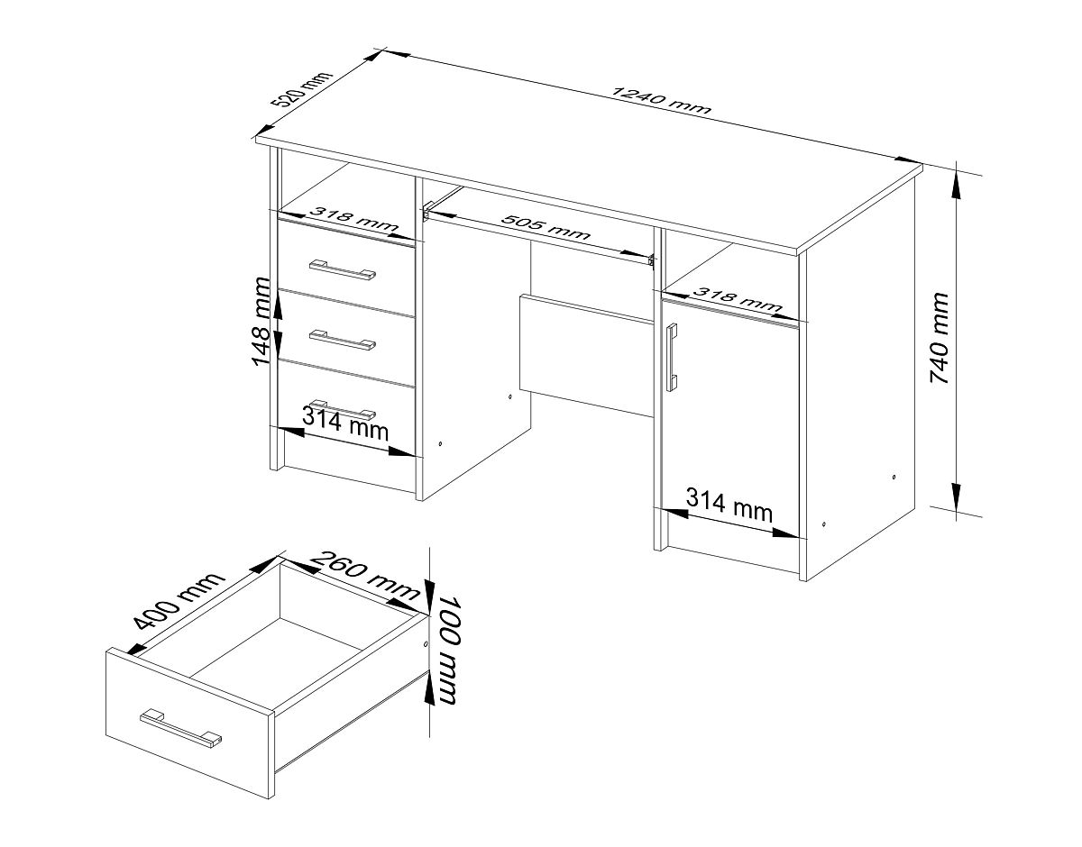 La scrivania presentata si distingue per la sua forma semplice e l'aspetto elegante - perfetta per chi apprezza soluzioni funzionali ed estetiche. Il mobile è realizzato in pannello laminato di alta qualità da 16 mm, che si caratterizza per l'elevata resistenza all'usura. I suoi bordi sono rivestiti con bordo ABS, che ne aumenta la resistenza ai danni. È interessante notare che i frontali dei cassetti e delle ante sono realizzati in pannello MDF con alta lucentezza - si distingue per il massimo standard di lucentezza possibile. Il mobile è di colore bianco e ha maniglie argentate. La scrivania include tre cassetti, due ripiani aperti e un ripiano con ante, offrendo molto spazio da utilizzare. Ciò consente una buona organizzazione del lavoro, poiché accessori e dispositivi importanti possono essere a portata di mano. Le dimensioni della scrivania sono 124 cm di lunghezza, 74 cm di altezza e 52 cm di profondità. Il mobile è destinato al montaggio autonomo. È incluso un manuale per aiutare nel montaggio. La scrivania si adatta perfettamente sia all'ambiente lavorativo che domestico.