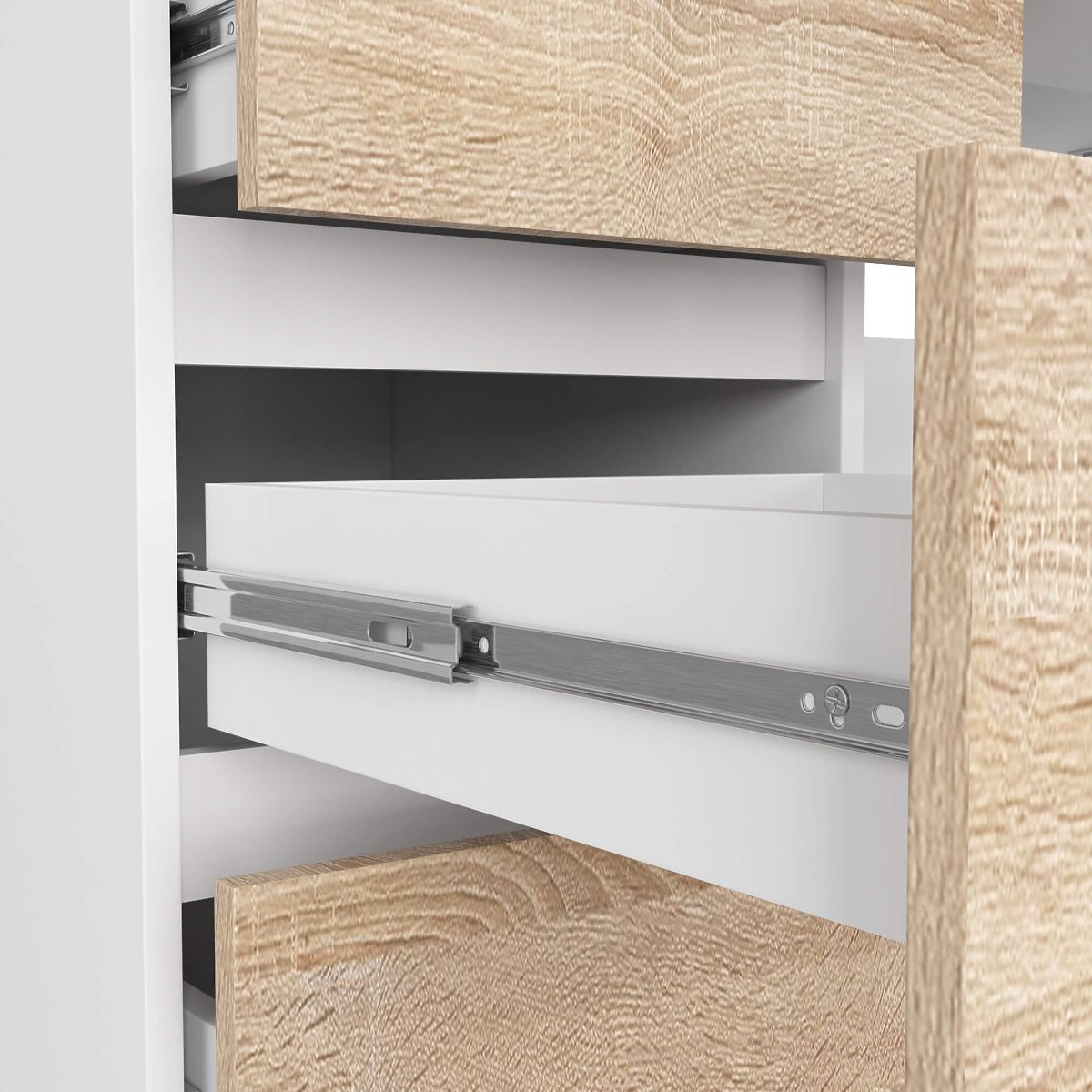 La scrivania per computer A-11 da 135 cm in colore bianco con superfici frontali in tonalità sonoma è un mobile funzionale, pratico ed ergonomico, dotato di 6 cassetti molto pratici, utili e spaziosi. Questo consente una migliore organizzazione dello spazio attraverso lo stoccaggio ordinato di oggetti che possono essere, ad esempio, utili ai nostri bambini durante lo studio o la scrittura dei compiti. Infine, è importante ricordare che, nello svolgimento dei doveri scolastici, i nostri bambini utilizzano sempre più spesso i vantaggi della tecnologia sotto forma di computer e internet.