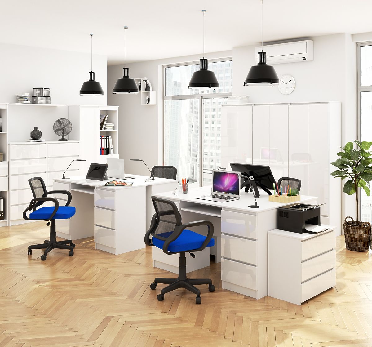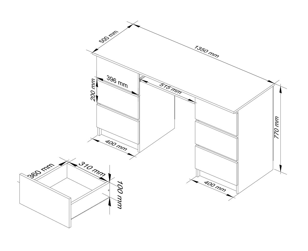 Lukahome.it » Tabelle e tavoli / Scrivere tavoli / SCRIVANIA PER COMPUTER A-11 135 cm 6 CASSETTI PK BIANCO / LUCIDO BIANCO
